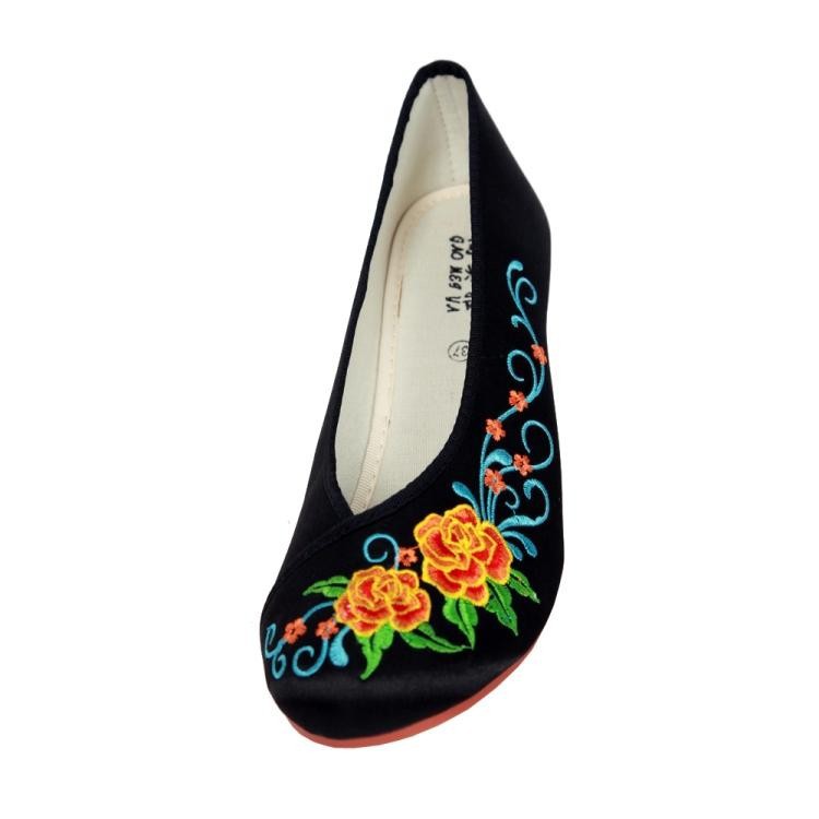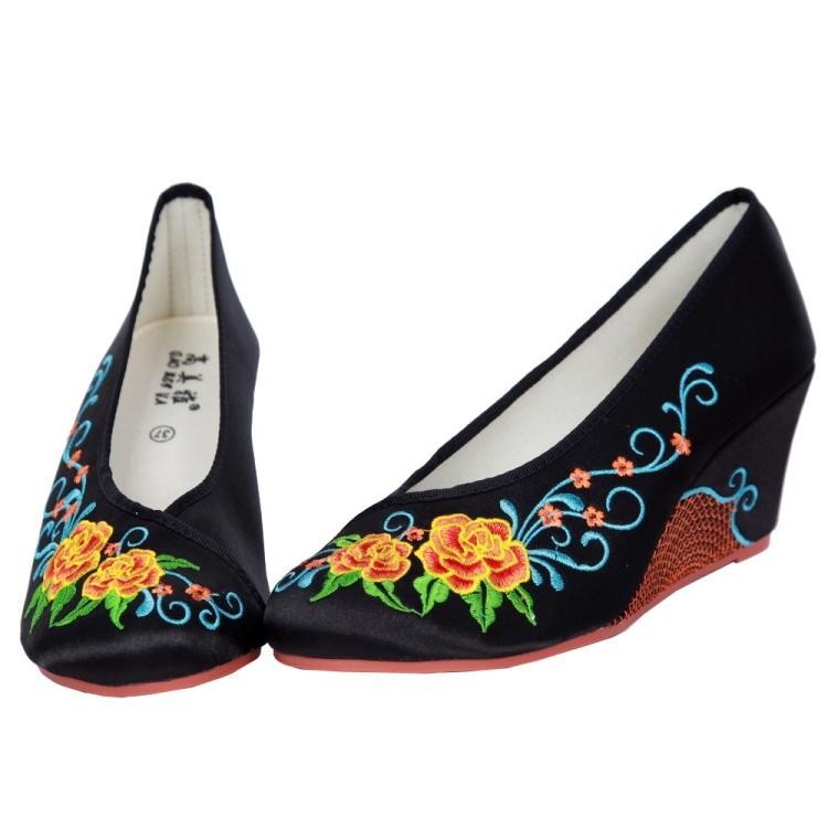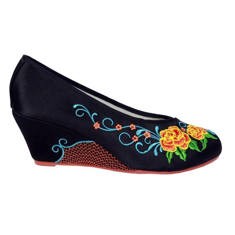2014 New Fashion Chinese Style Embroidered Shoes High/Wedge Heel Women’s Shoes Black Free Shipping
