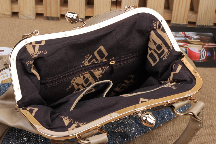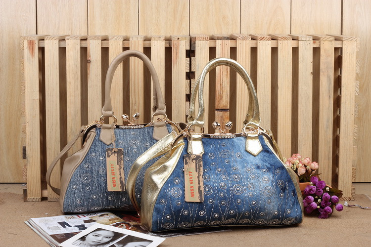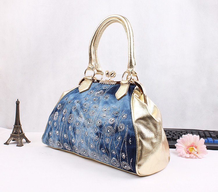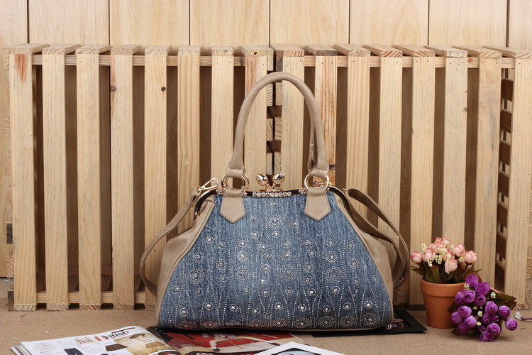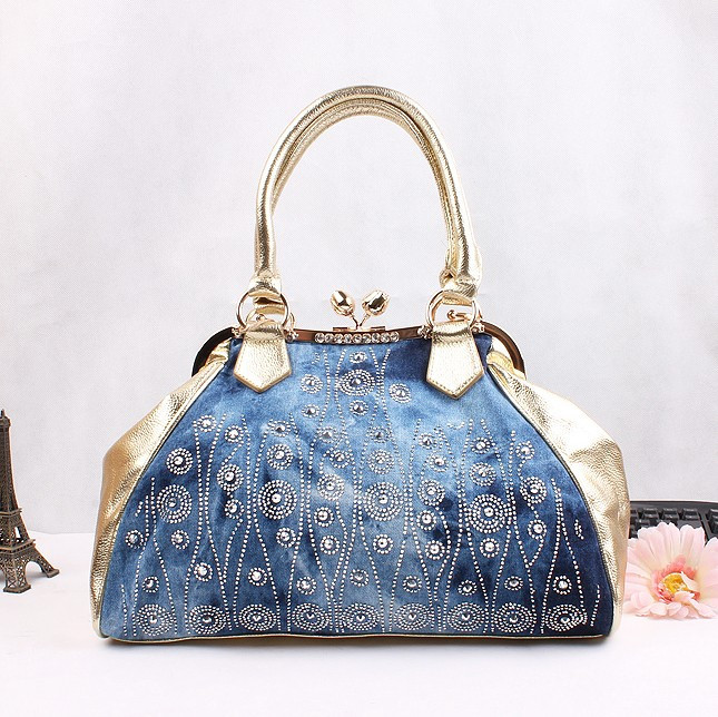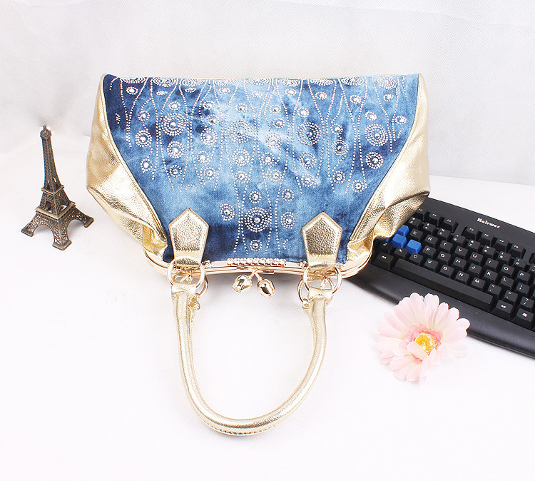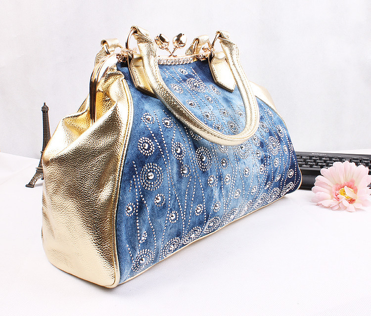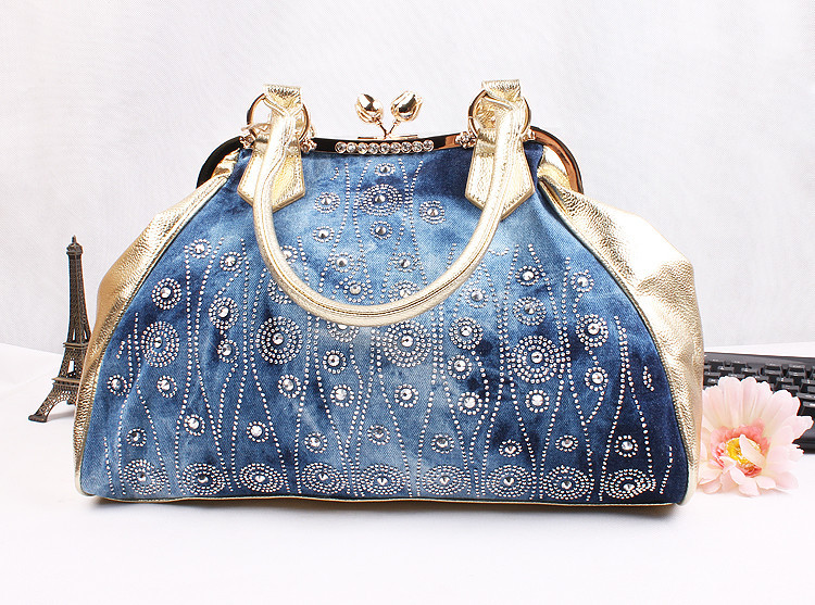 2014 New Fashion Luxury Hasp Shine Denim Diamonds Jeans Women HandBags Evening Bags Totes For Lady