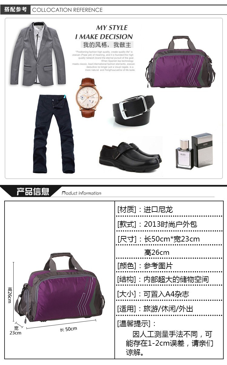 2014 new fashion men and women travel bags large sport handbag free shipping