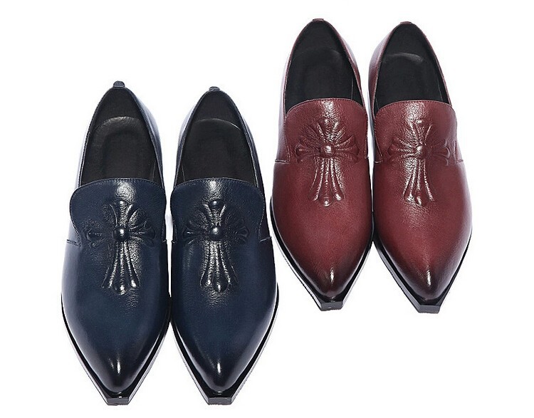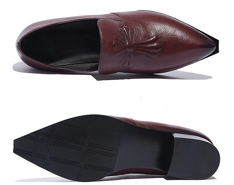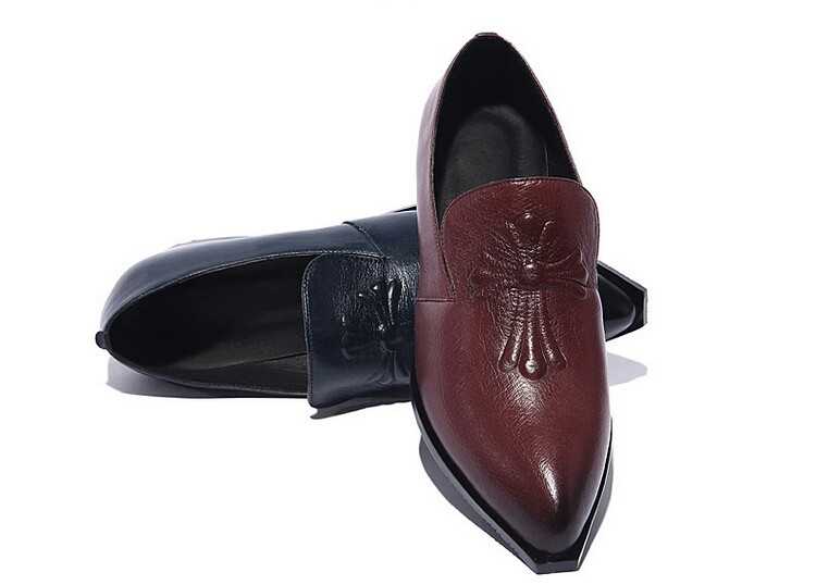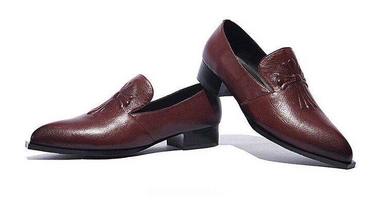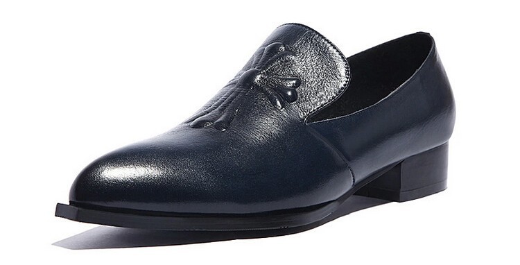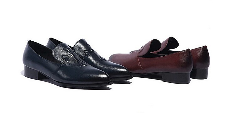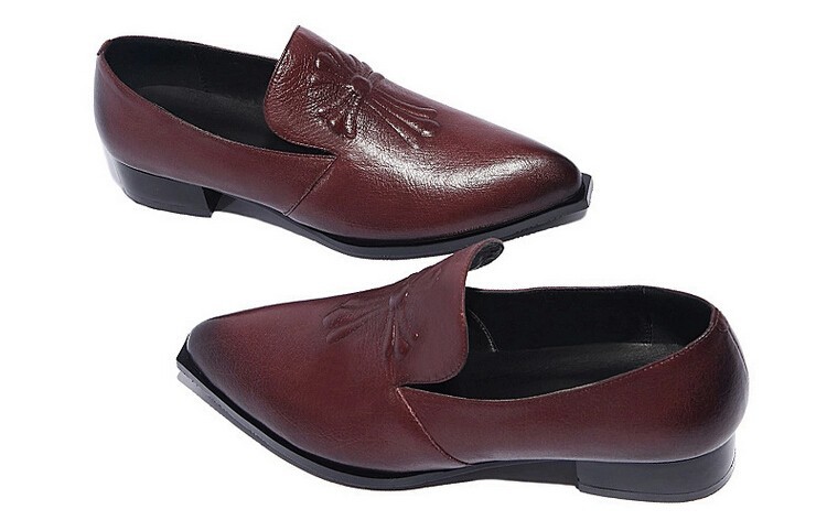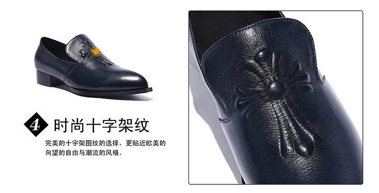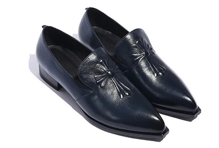2014 New Fashion Spring/Summer Women Leather Embossed Pointed Toe Slip-on Low Heel Loafer Shoes