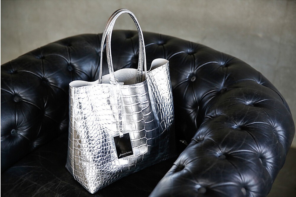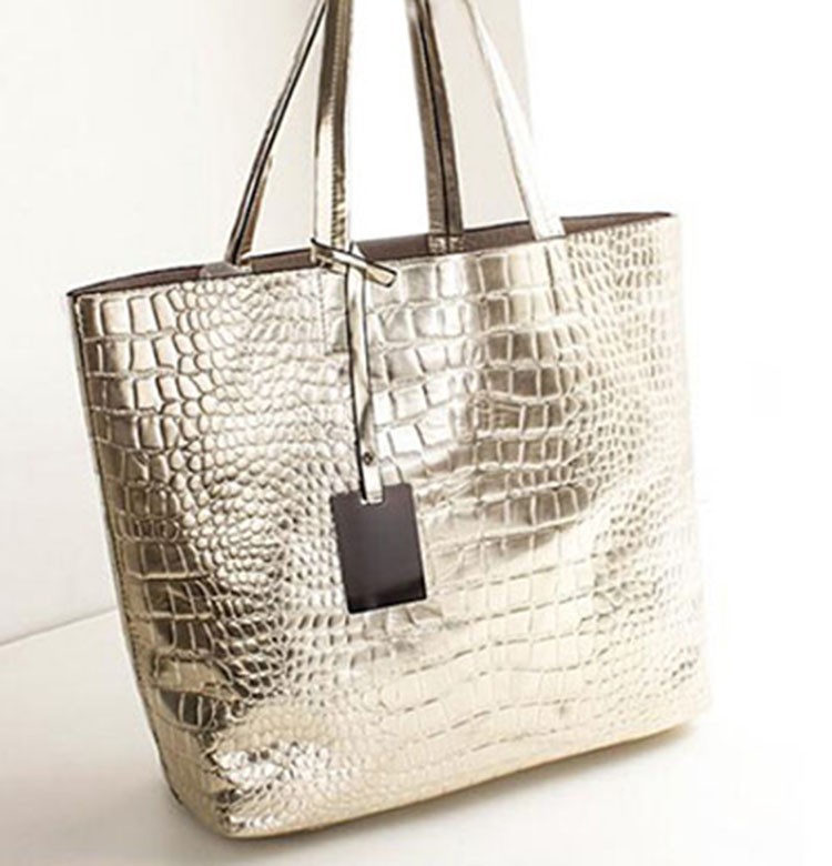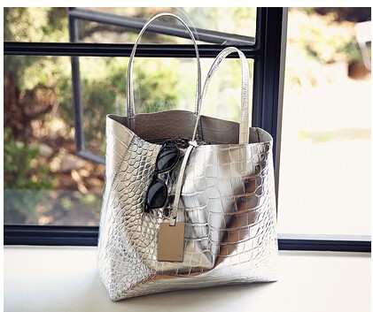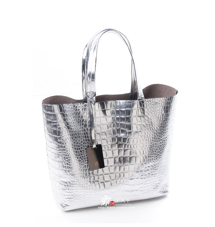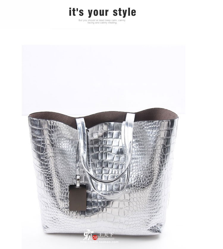 New Fashion Sliver PU Leather Crocodile Pattern Women Messenger Casual Tote Bags Europe LadiesClutch Bags Fake