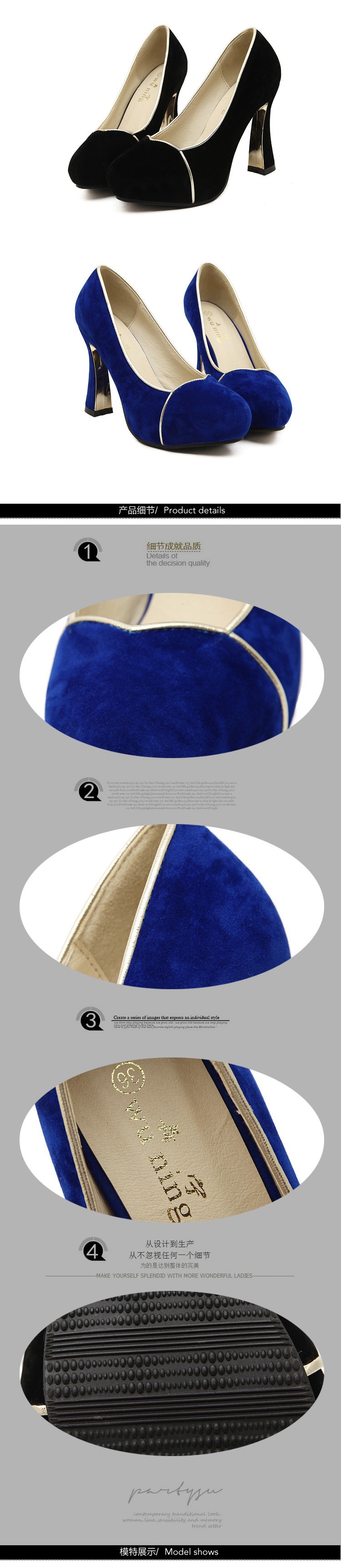 2014 new fashion women pumps 10cm high heels slip on round toe dress shoes woman black blue