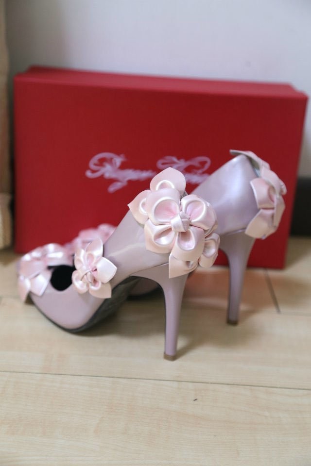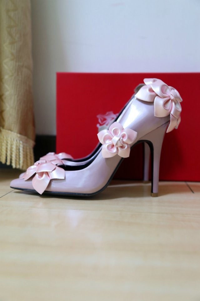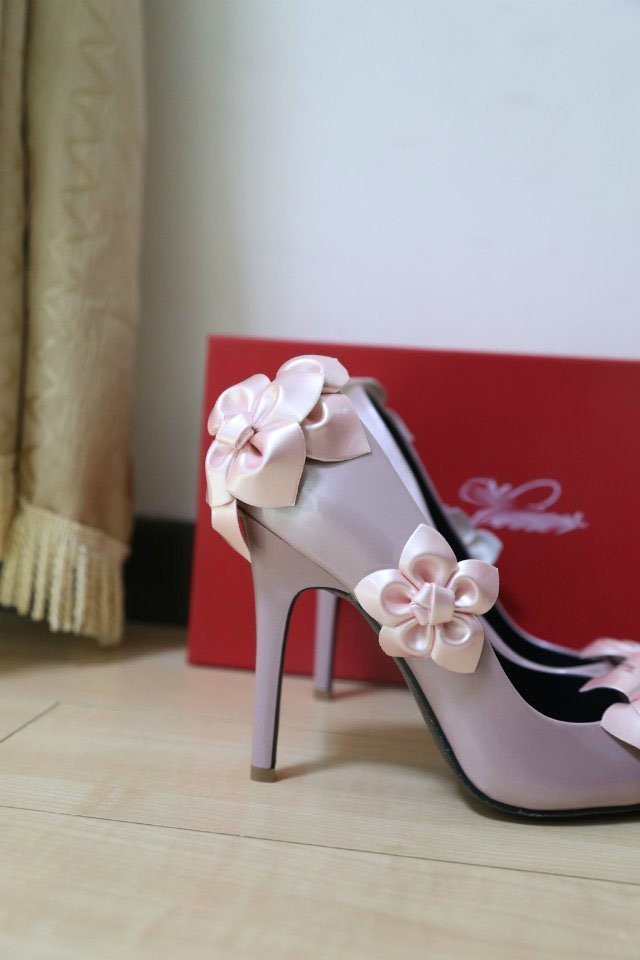 2014 New Genuine Leather fine pointed women’s shoes with high heels flowers wedding shoes