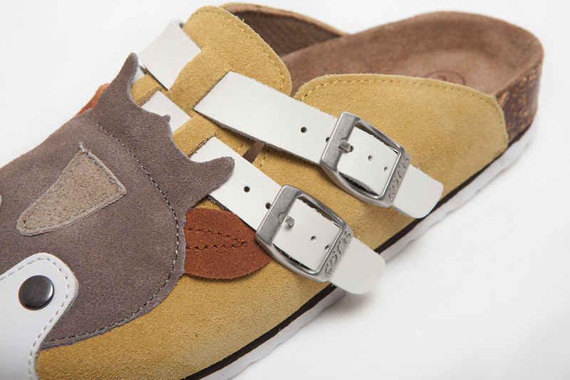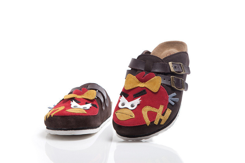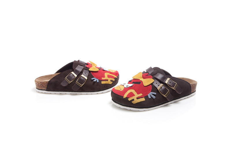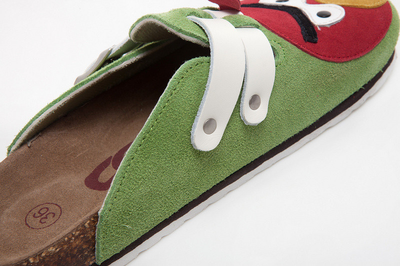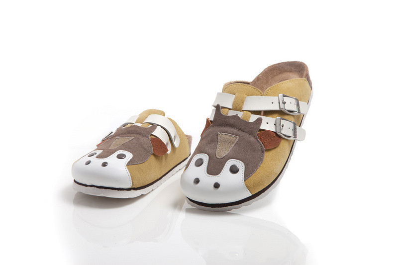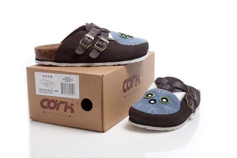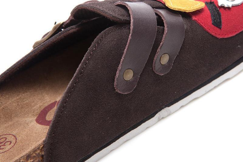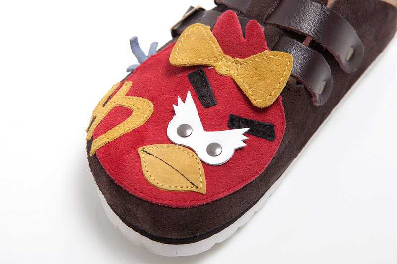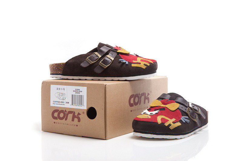 2014 new guneine leather new Cork birkenstock sandals with bird appliques female Closed toe colorant match sandals