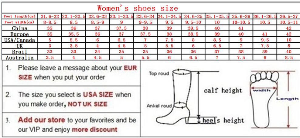 1)Please leave a message about your FOOT LENGTH(VERY IMPORTANT) and Gender when you put your order.