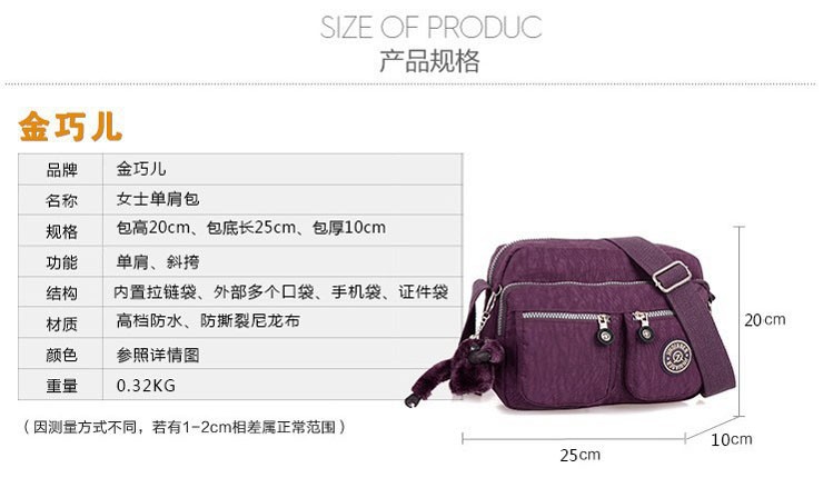 2014 New Kip Brand waterproof nylon messenger bag women kip candy color shoulder bag for female leisure sweet cross-body bags