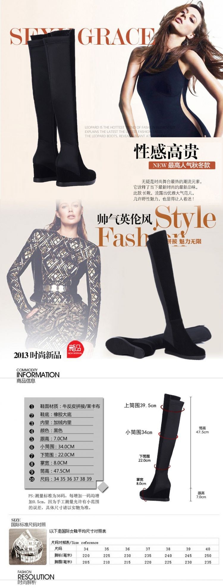 2014 New mixed colors genuine leather over-the-knee boots for women wedges heel winter warm fur female ladies Riding boots
