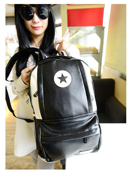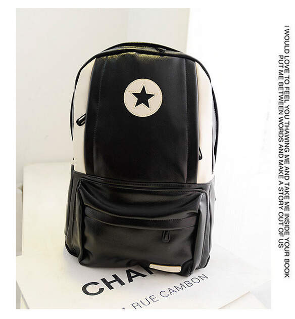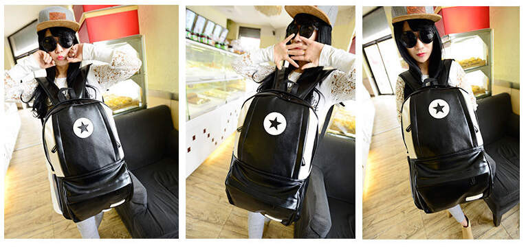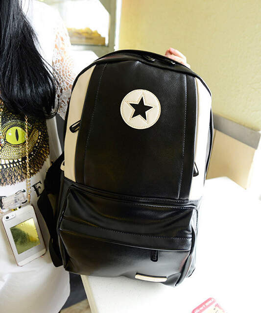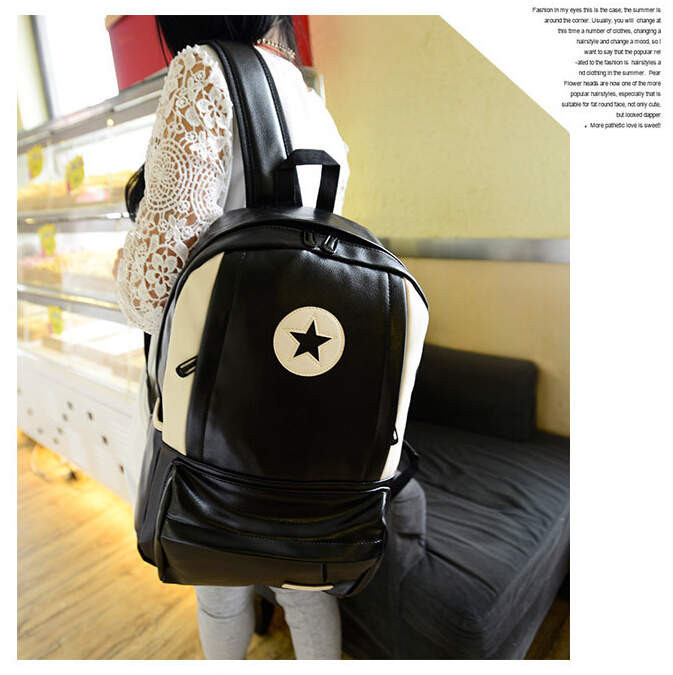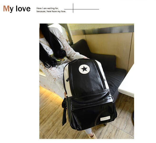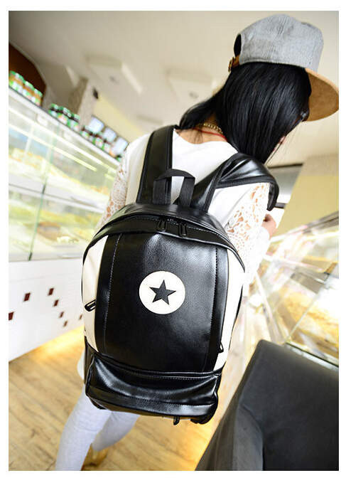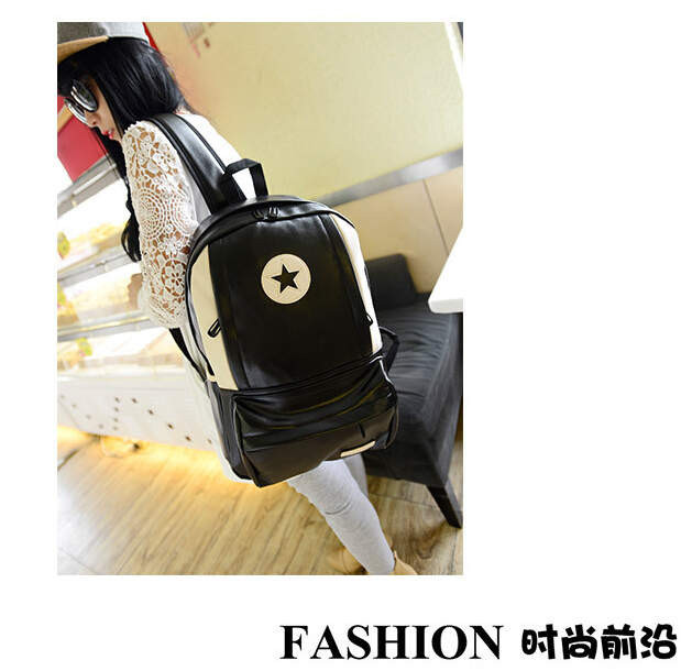 2014 new PU leather high school female backpack korea edition lovely bag fashion five-pointed star pattern backpack