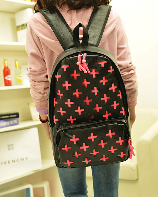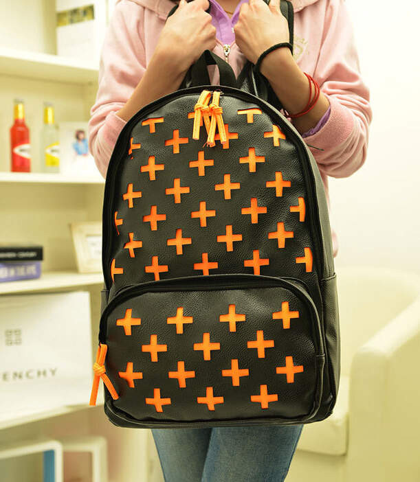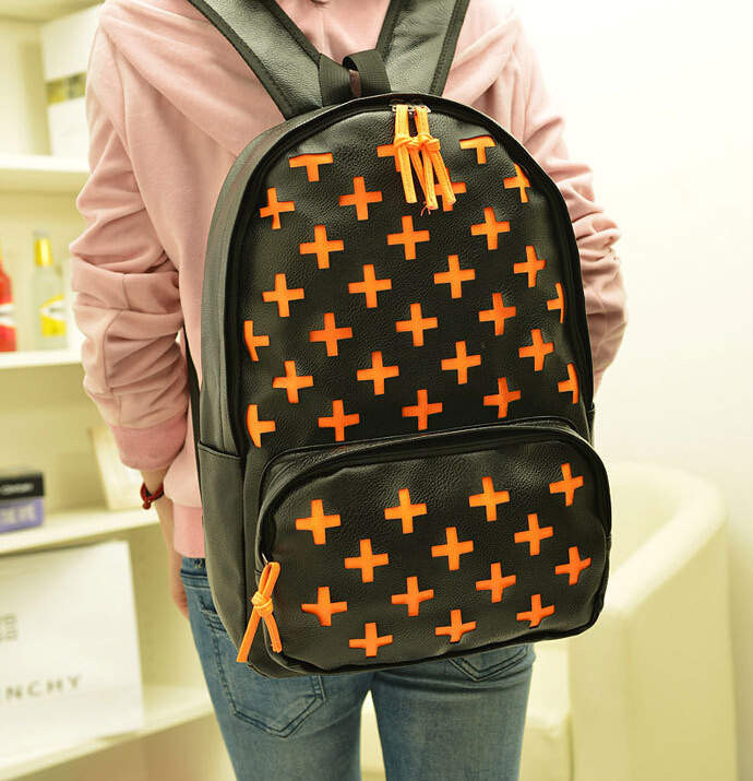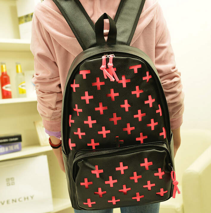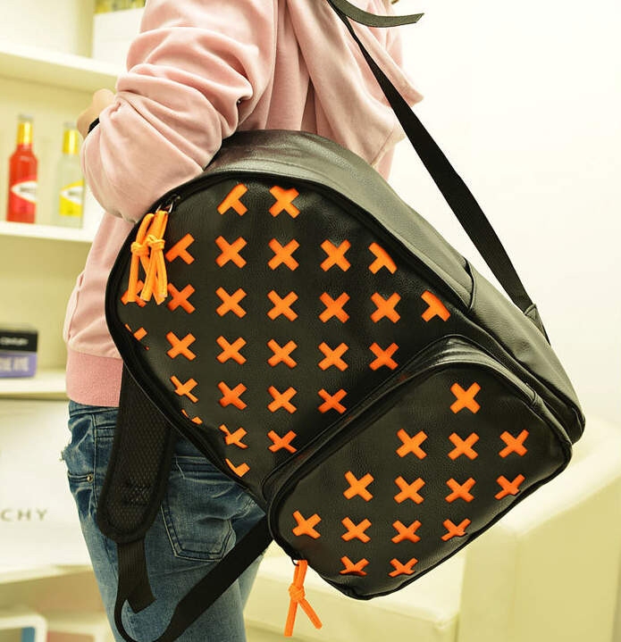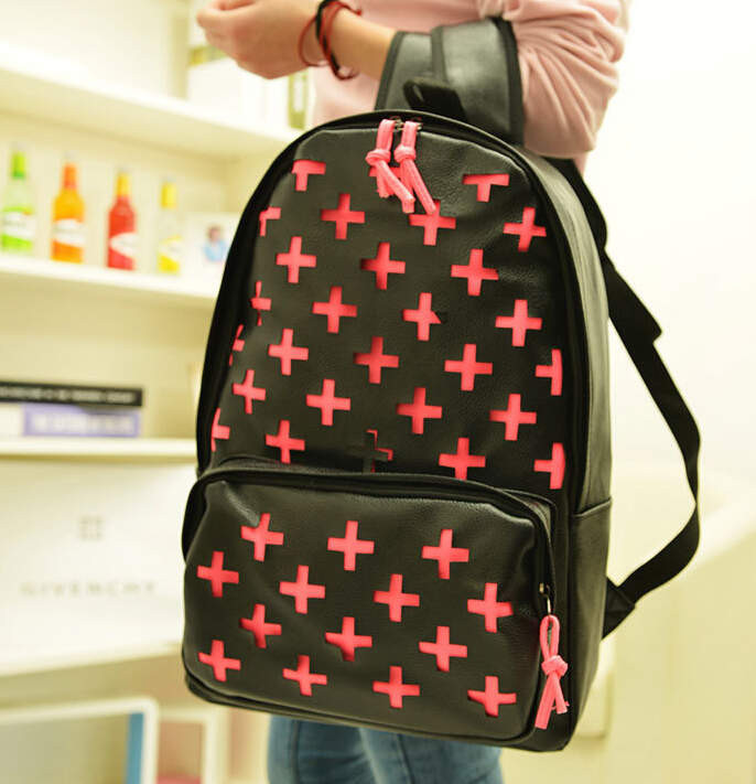 2014 new PU leather high school female backpack korea edition lovely bag hollow out popular element bags