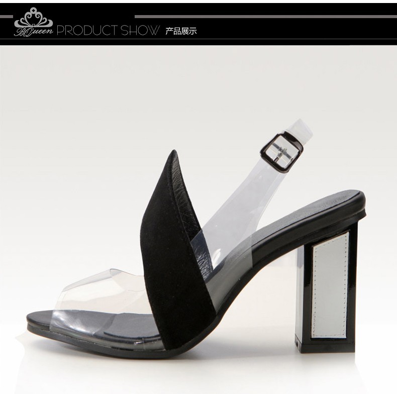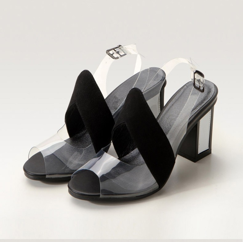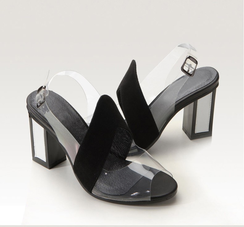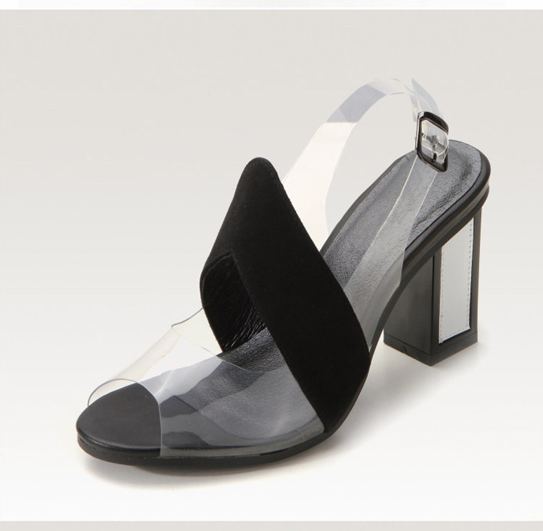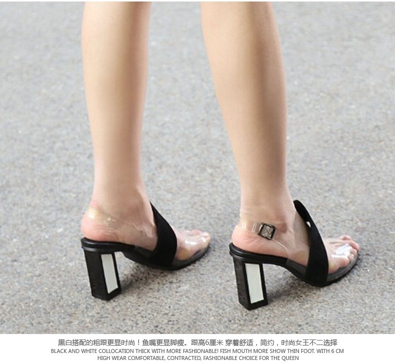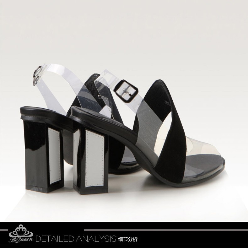 2014 new star of the same paragraph with thick transparent leather shoes, fish head sandals shoes