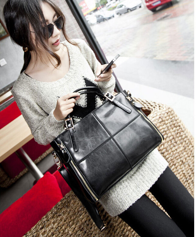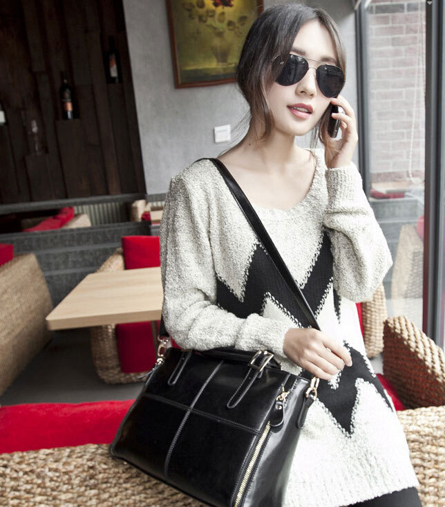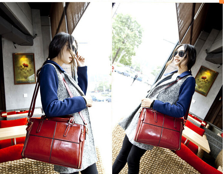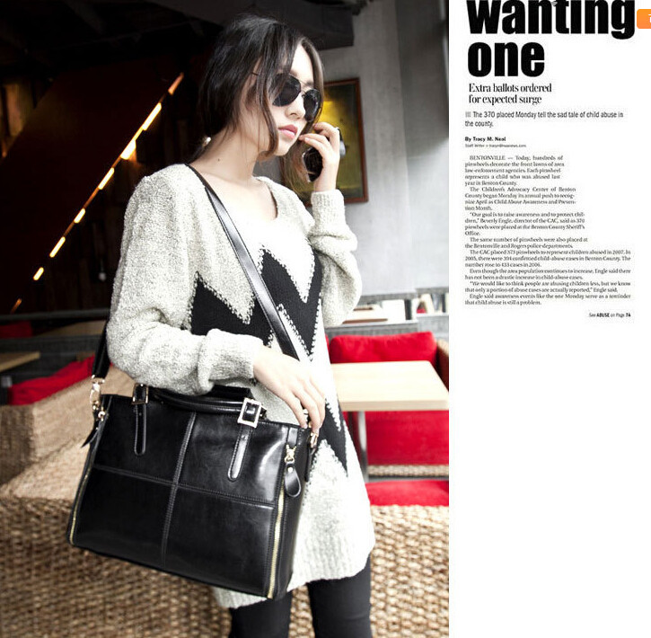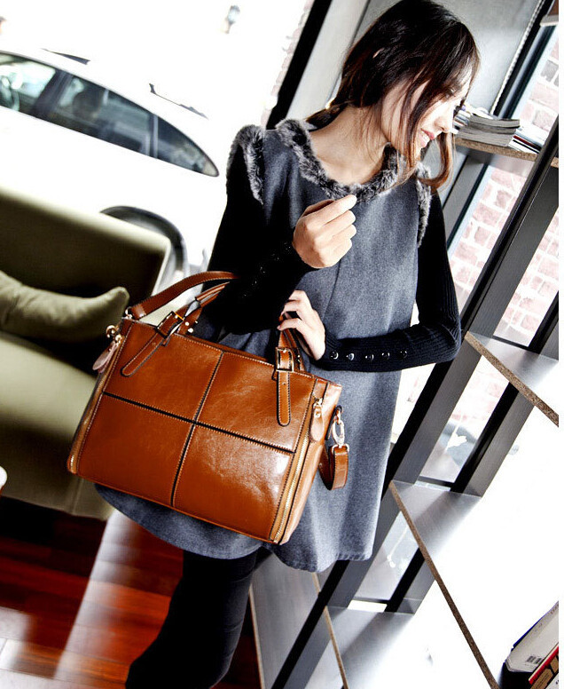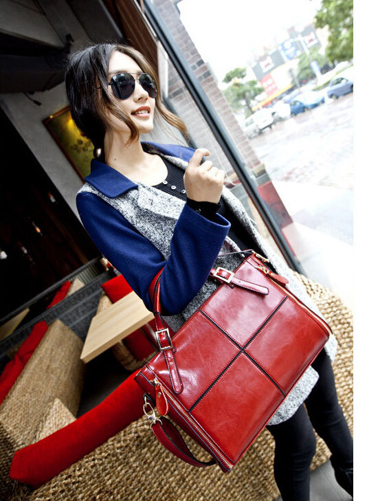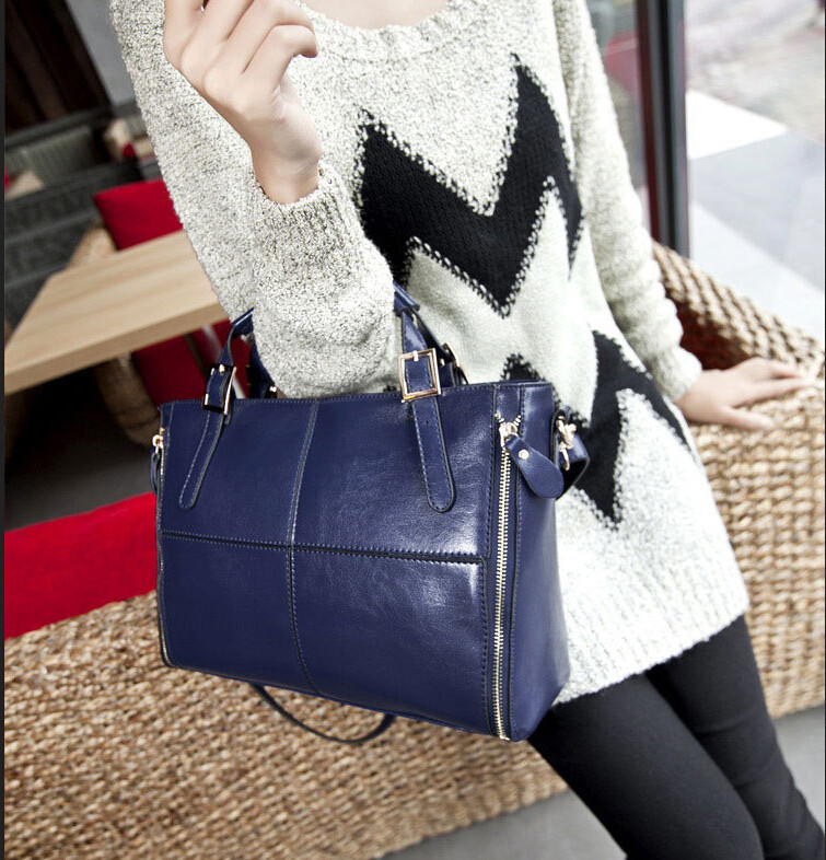 2014 New stitching leather handbags women 5 colors fashion leather shoulder bag Mobile Messenger bag