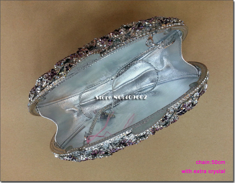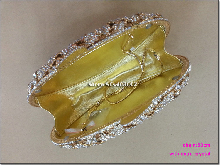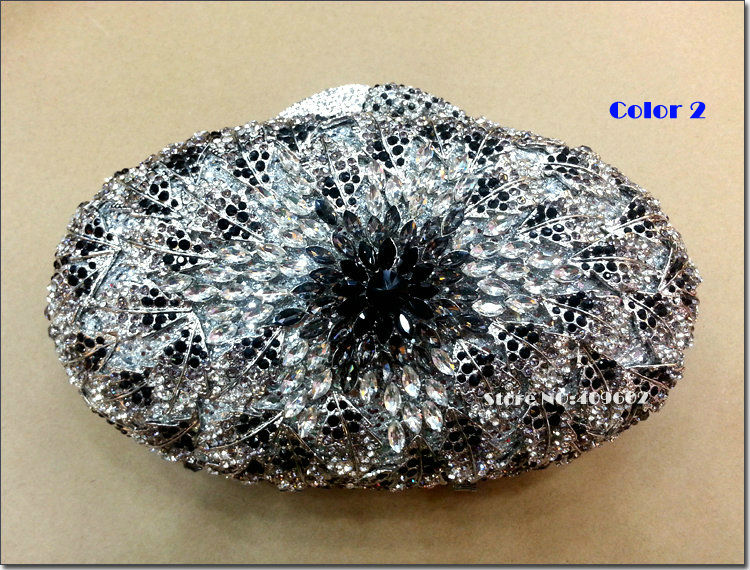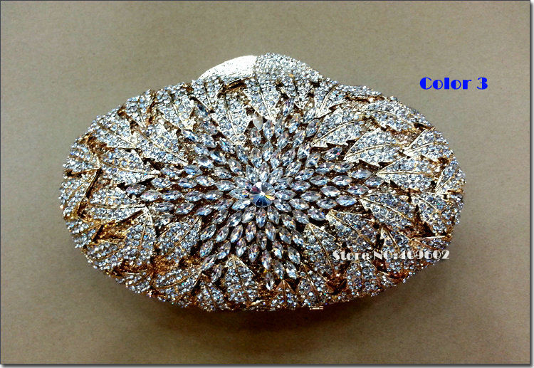 2014 NEW Style Luxury Crystal Women Wallets Clutch Evening Bags Flower Oval metal inlay crystal Women handbags Free Shipping