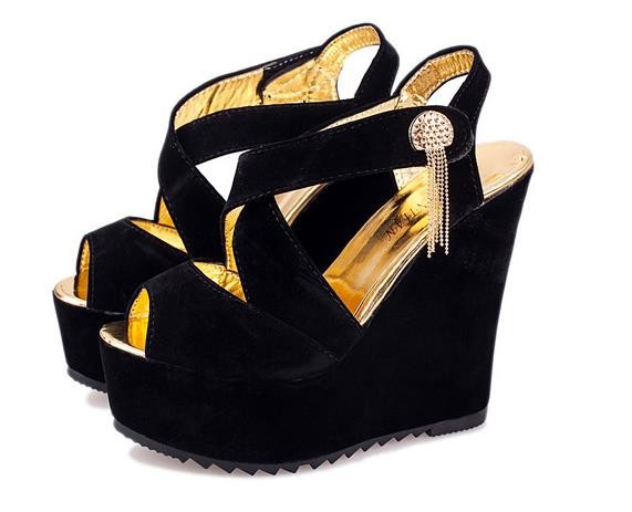 2014 NEW summer sexy peep toe chain high-heeled hollow sandals fashion women cross tied wedge thick bottom shoes platform pump