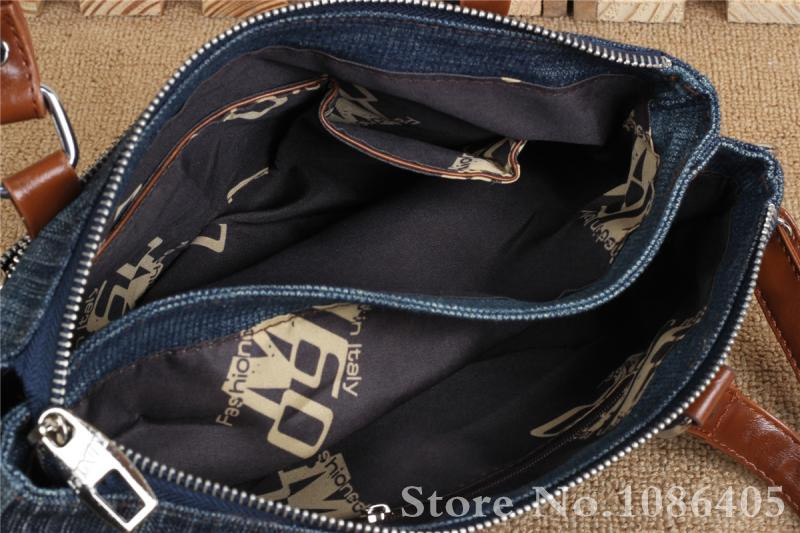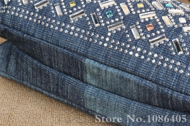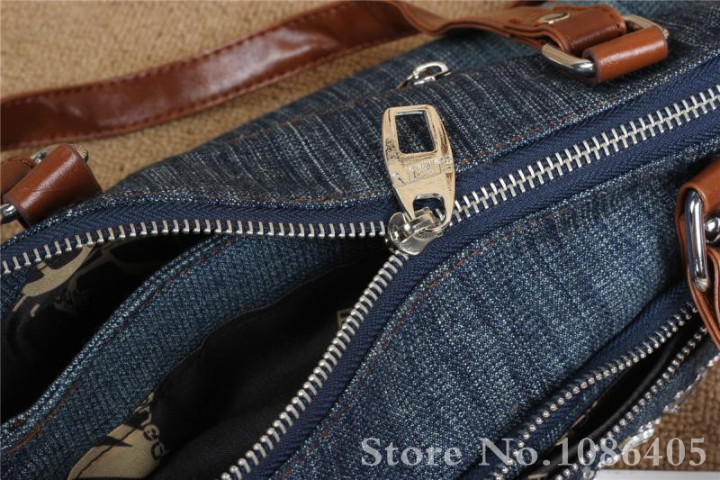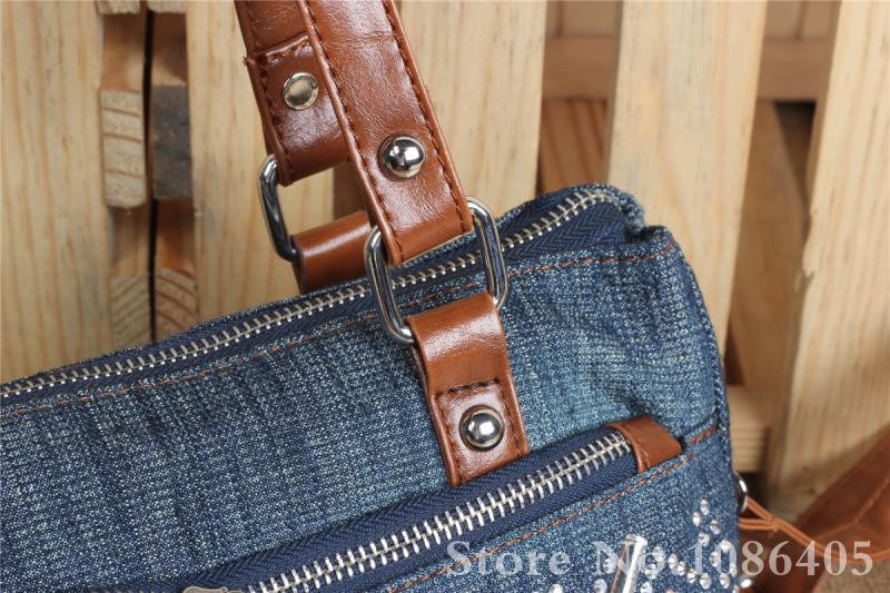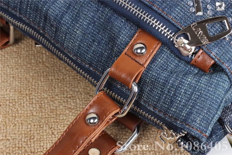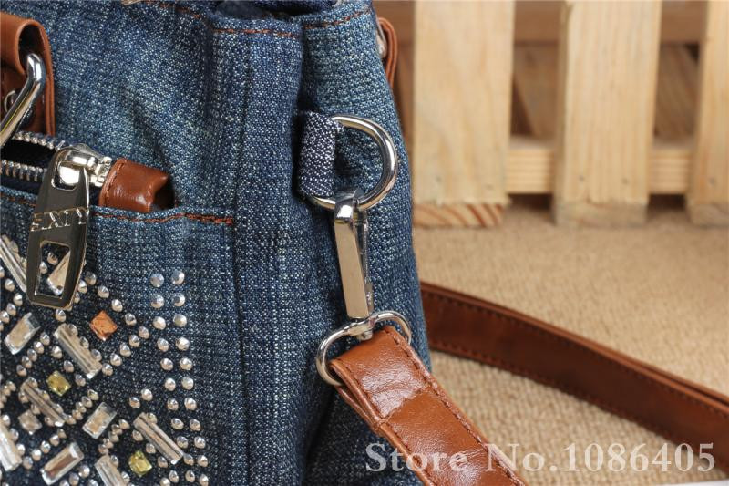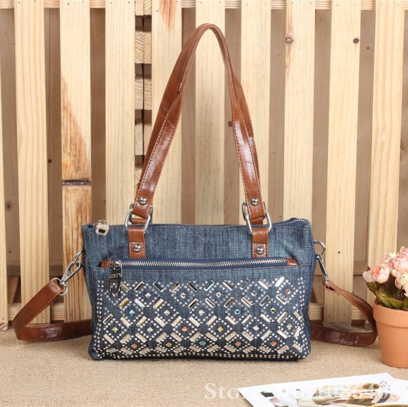 2014 New Vintage Fashion Zipper Jeans Shine Rhinestone Cotton Women HandBags Shoulder Totes For Evening Party Free Shipping