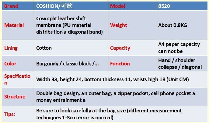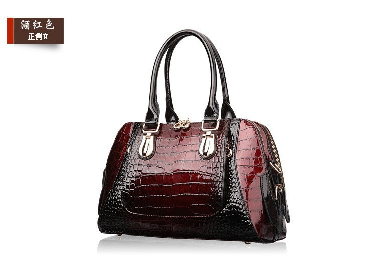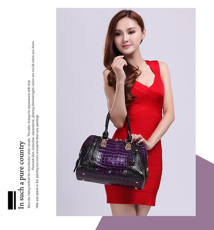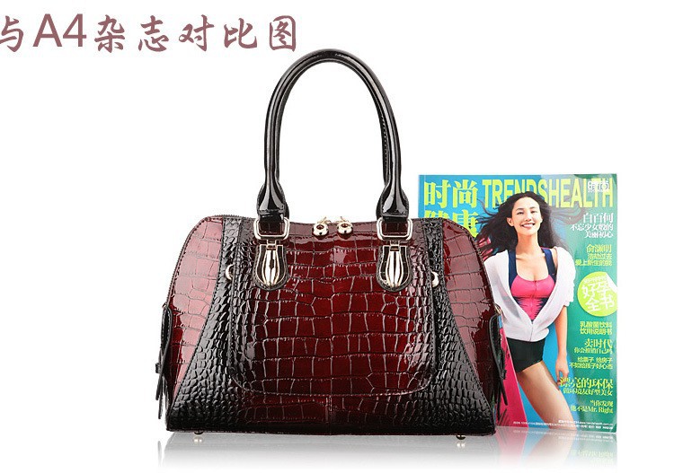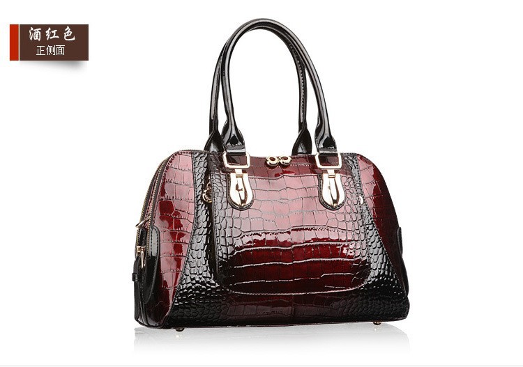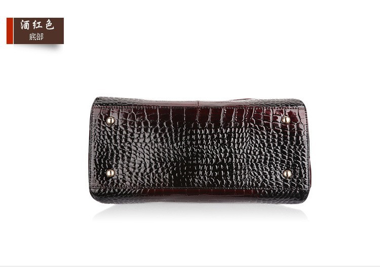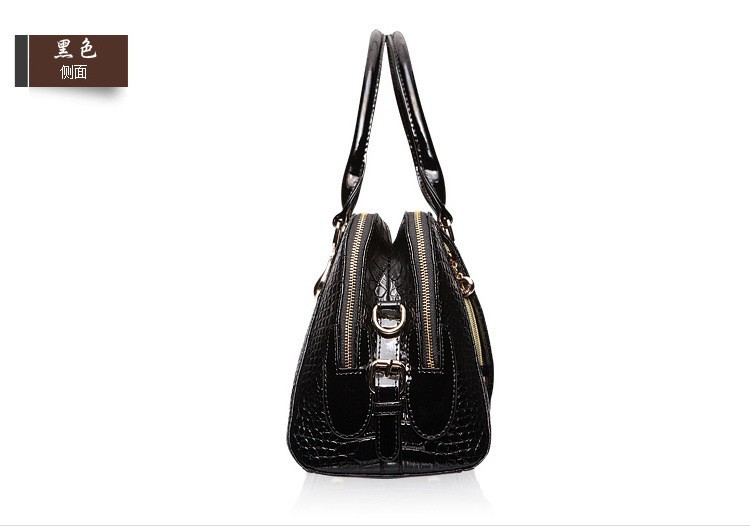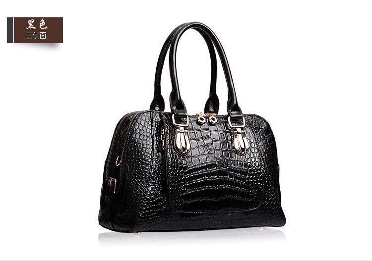 Material: Leather Cortical features: leather Processing methods: Embossing Style: OL commuter Style: handbag, messenger bag, shoulder bag Model: 8502 Luggage shape: a square cross-section Strap root number: double root Openings: Zipper Hardness: the more rigid Popular elements: crocodile Pattern: solid Whether the trade: No Color: purple, black, wine red