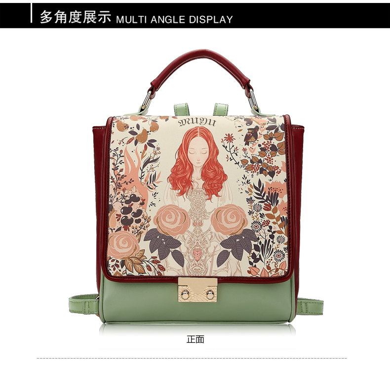 Suitable for: Young Gender: Female Material: PU Material Process: Printing mention carry parts types: the soft closed mode: zipper buckle Internal Structure: zipper pocket cell phone pocket document bag luggage bag type: dig bags popular elements: printing patterns: people color Category: Three back method: can the shoulders, shoulder can be diagonal whether the sandwich: None luggage hardness: soft whether folding: no Condition: New application scenarios: Casual bag size: (the longest side 30 -50cm) style: Japan and South Korea shape: vertical square shoulder strap styles: double root lining