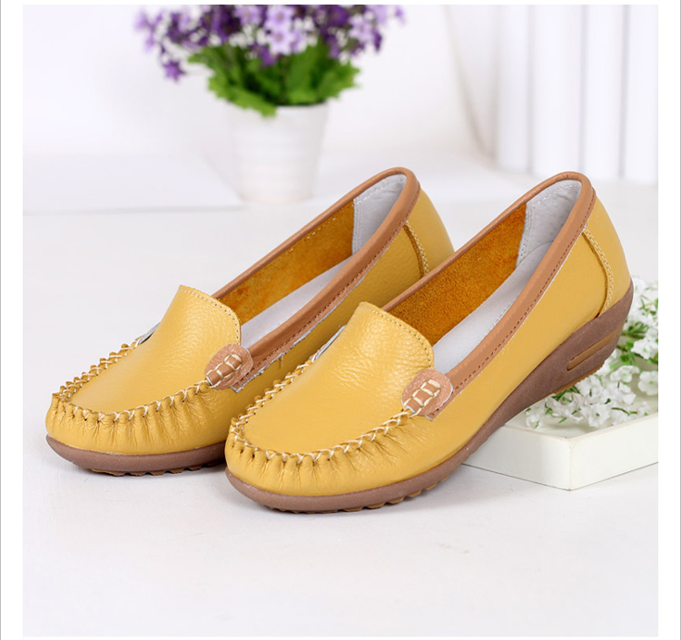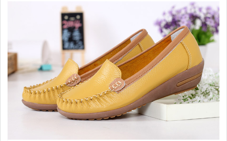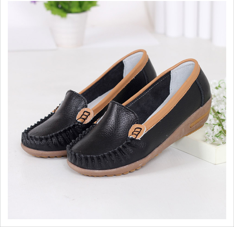 2014 new women casual leather soft bottom slope with shallow mouth mom tendon at the end leather shoes@01