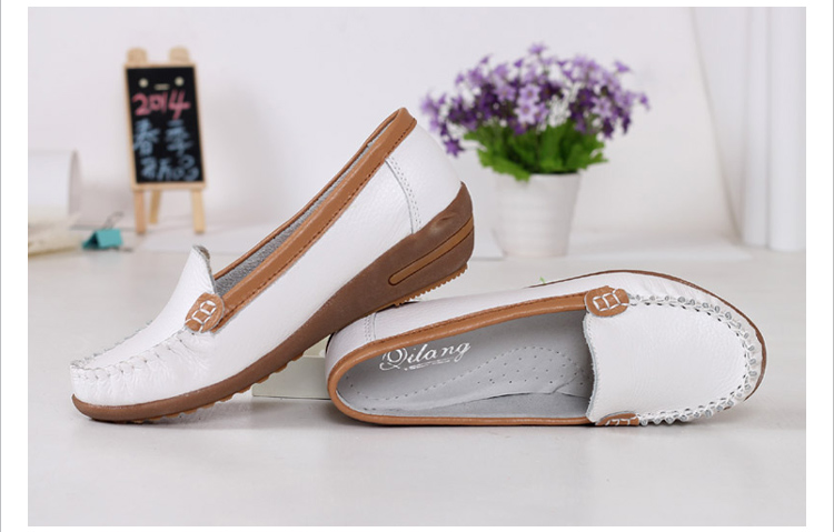 Hot 2014 New Fashion Ladies Cute Genuine Leather Ballet Casual Womens Shoes White Loafers Low Heel Comfort Flats 5