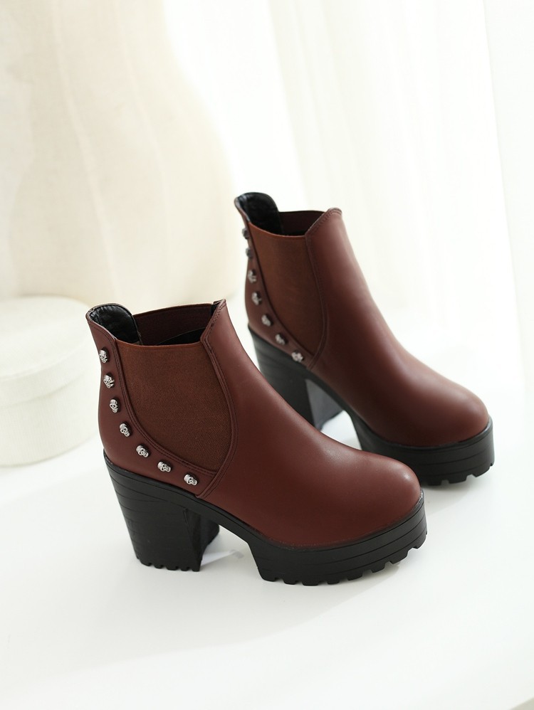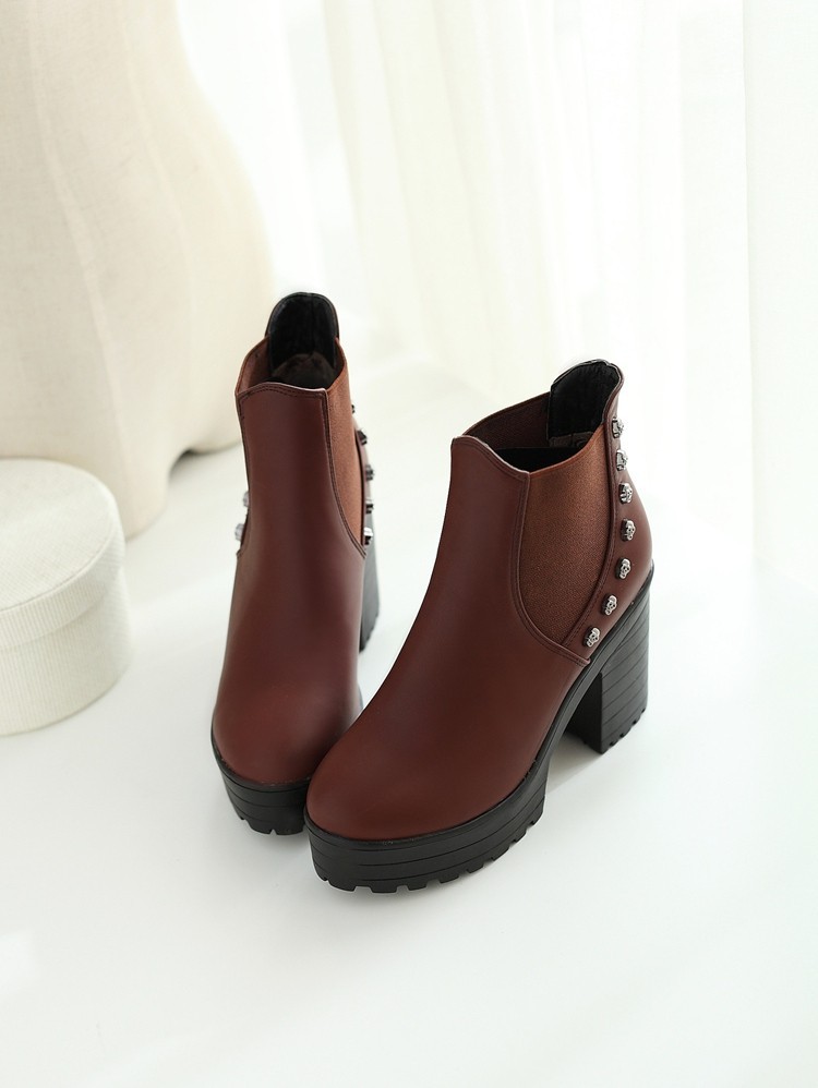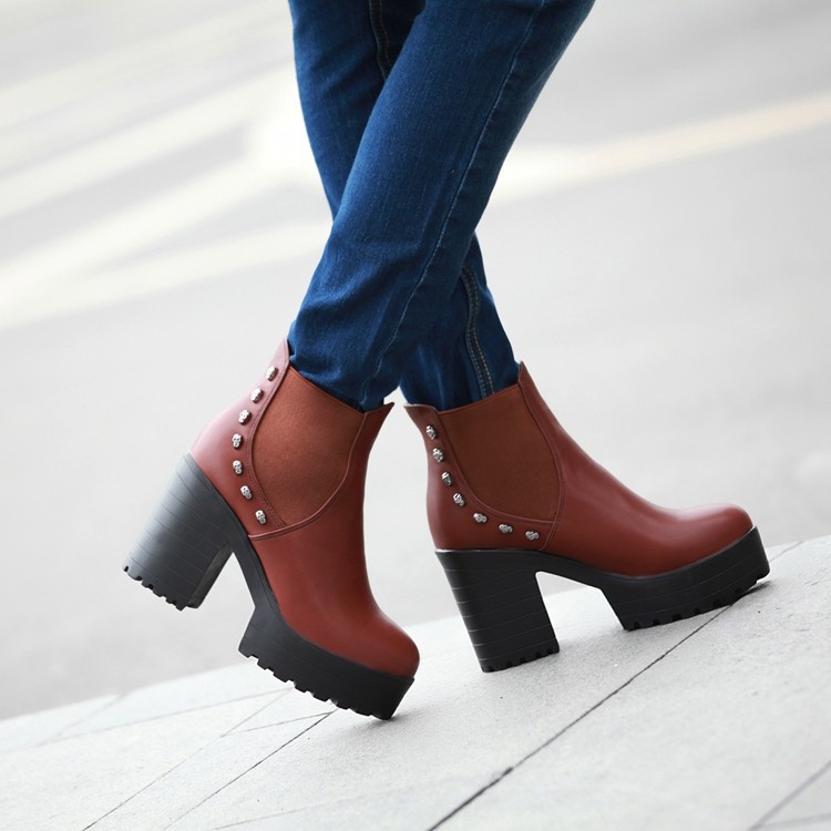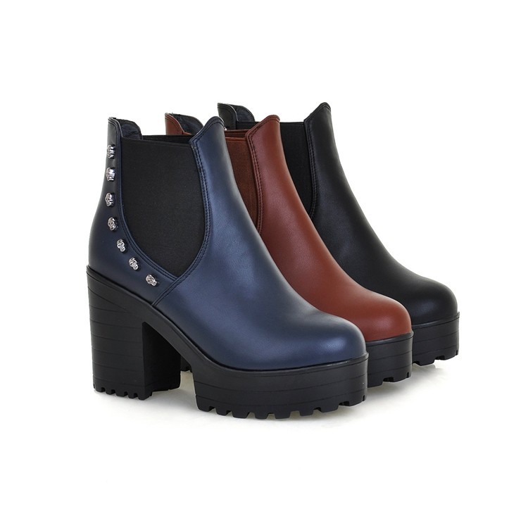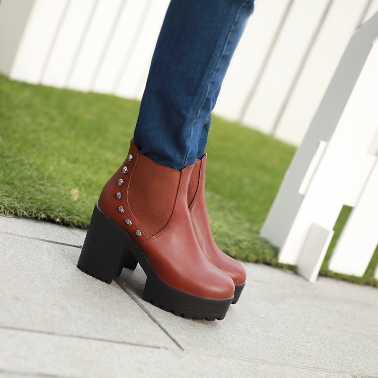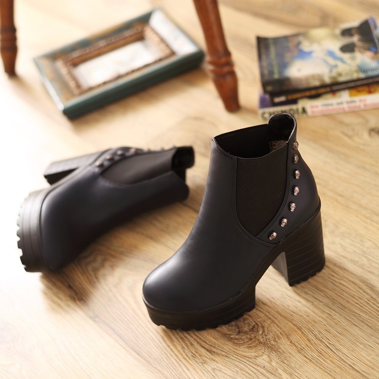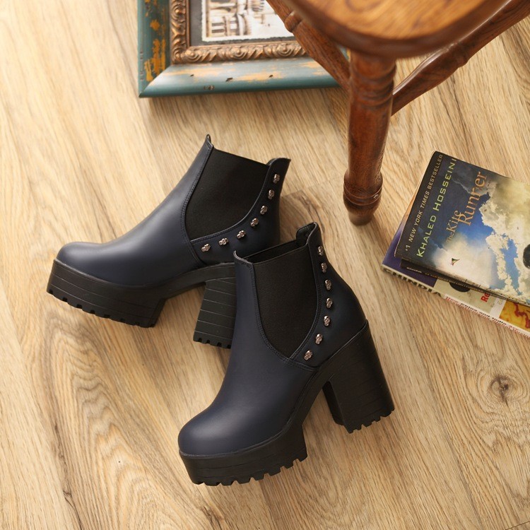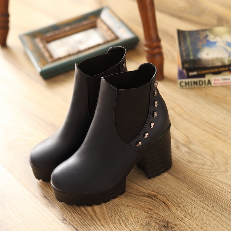 2014 New Women Pumps European PU leather boots ladies high heel fashion Motorcycle boots pumps women