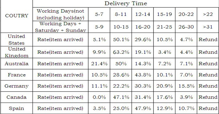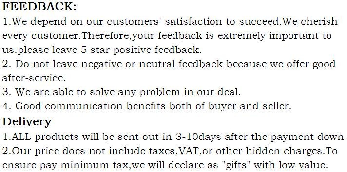 | Seller Service | On-time DeliveryIf you do not receive your purchase within 60 days, you can ask for a full refund before order completion (when you click "Confirm Order Received" or exceed confirmation timeframe). |