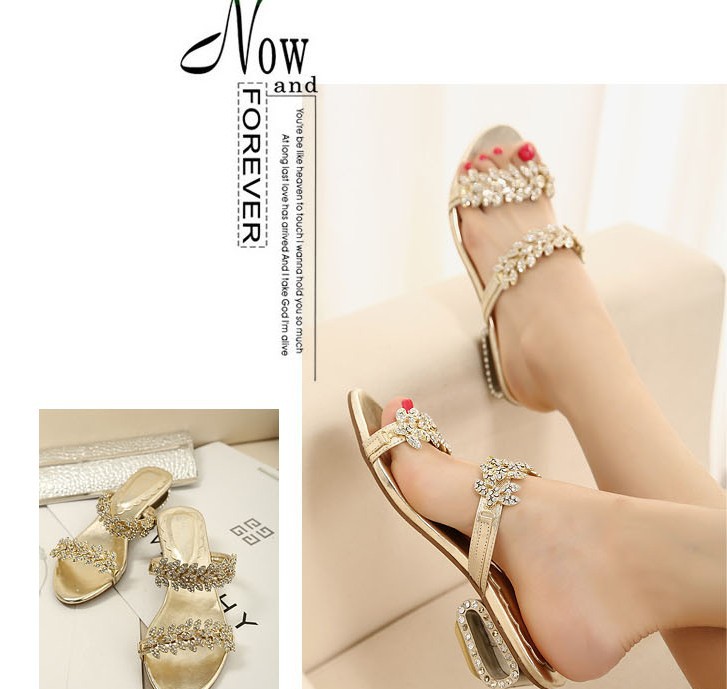 2014 new women’s sandals, diamond fashion casual ladies sandals golden slippers free shipping
