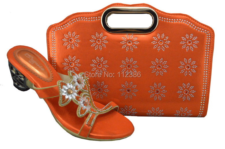 2014 newest wholesale African Wedding shoes and bag matching with free shipping orange color
