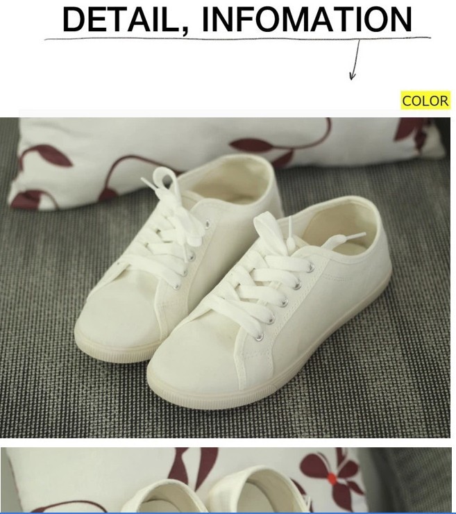 Shoe material: canvas.Shoe material: rubber;Applicable gender: female;Upper level: low help;Sole process: sticky rubber shoes;Wearing a way: front lace-up;Popularelement:candycolor;Function:warm;Design: the pure color;Color: white, black, gray ‘size: 35,36,39,38,40,37′