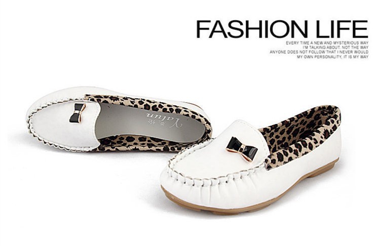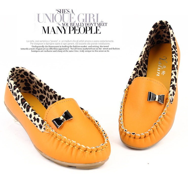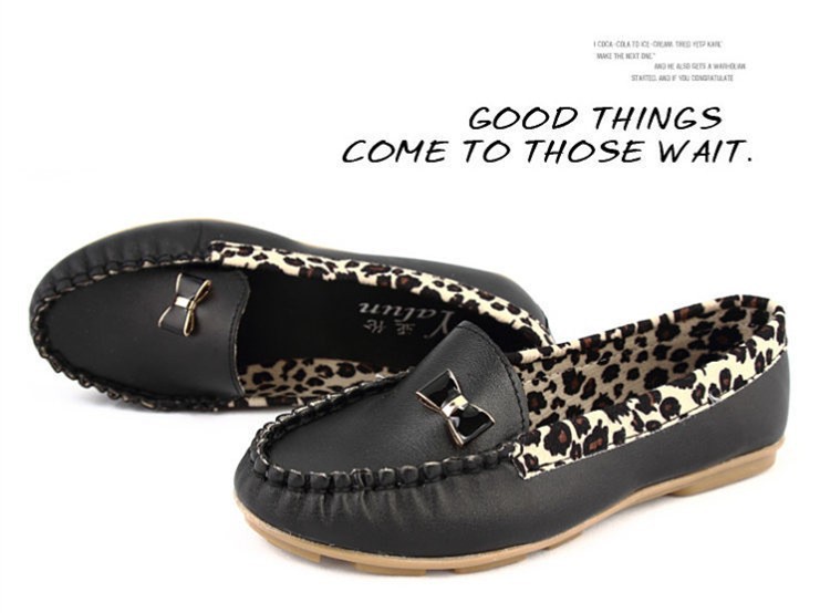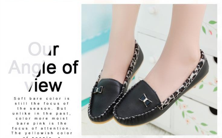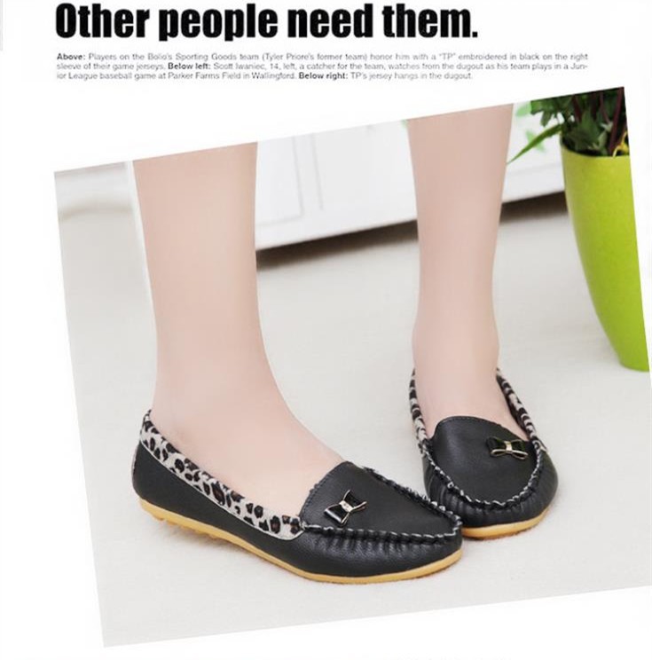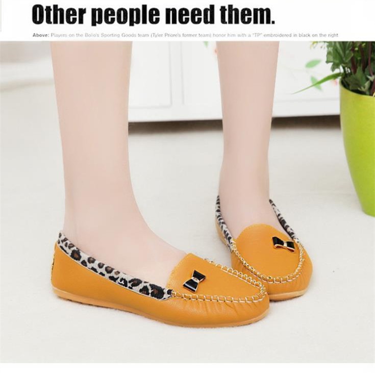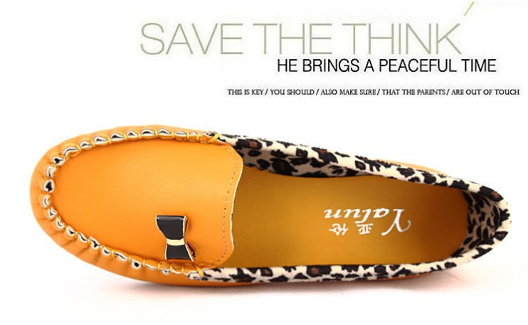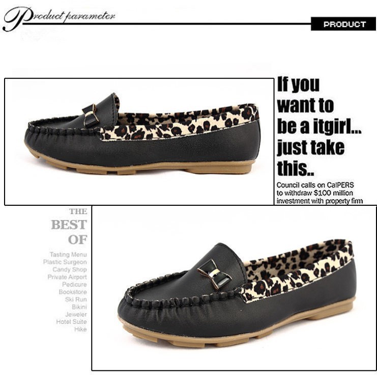 2014 Peas shoes casual shoes leopard splicing Korean female soft leather flat shoes Peas