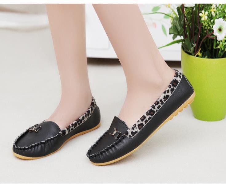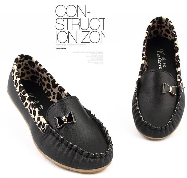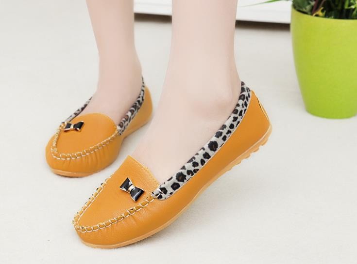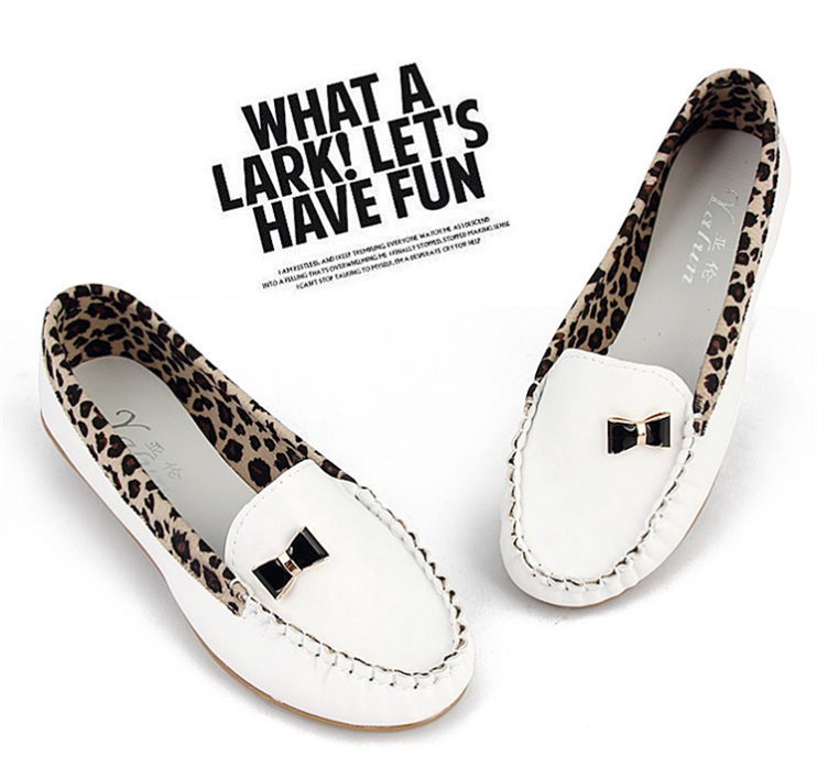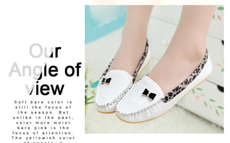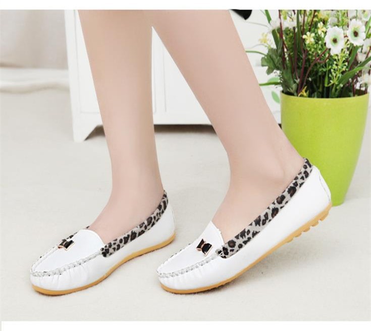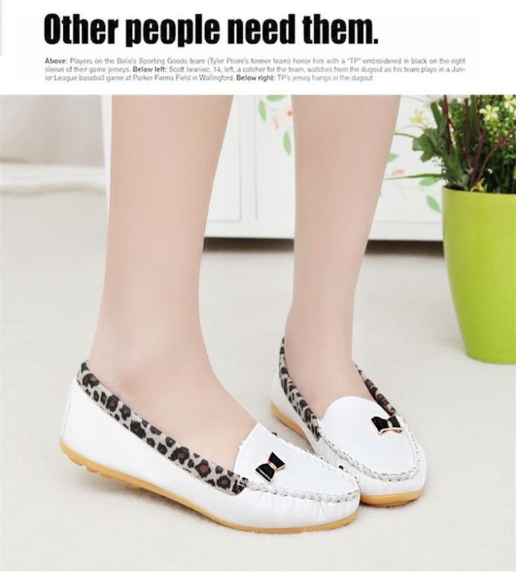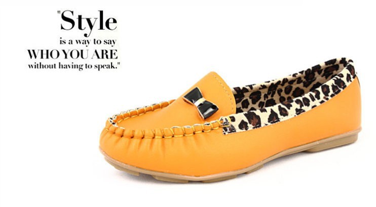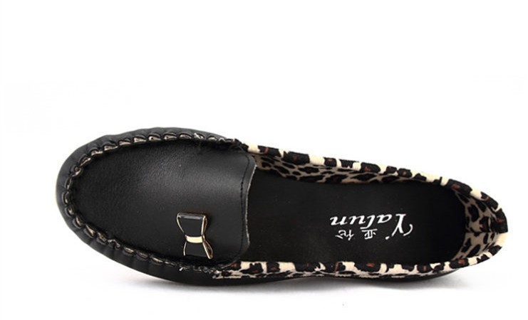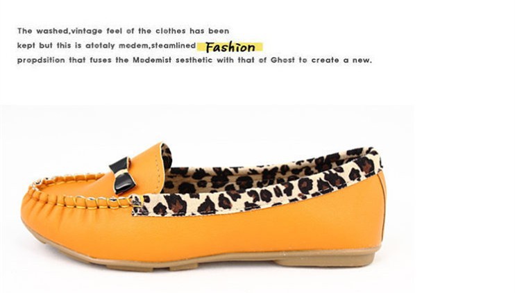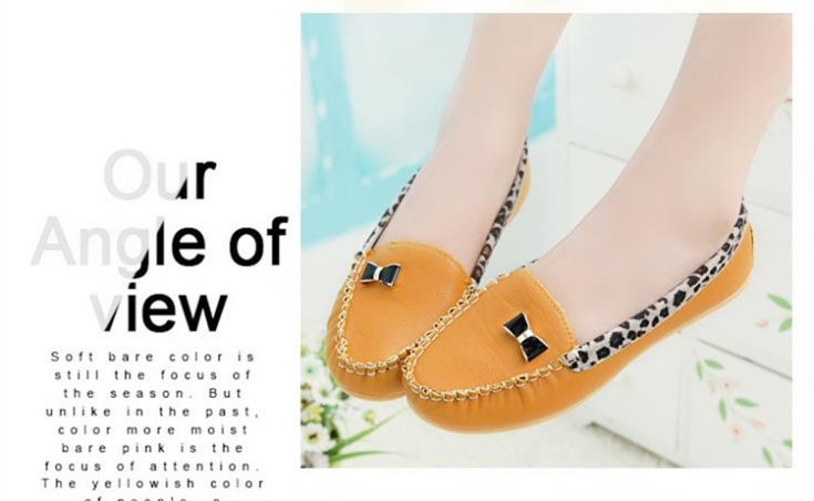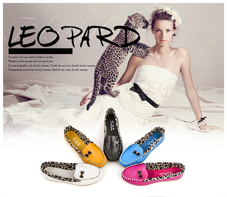 2014 new women casual shoes leopard splicing female soft leather flat shoes free shipping