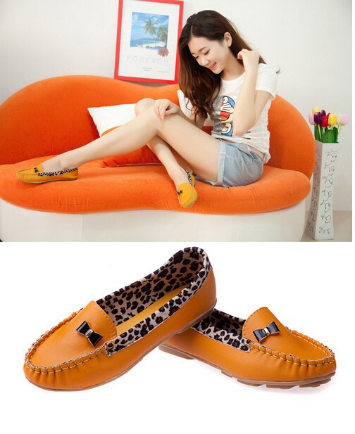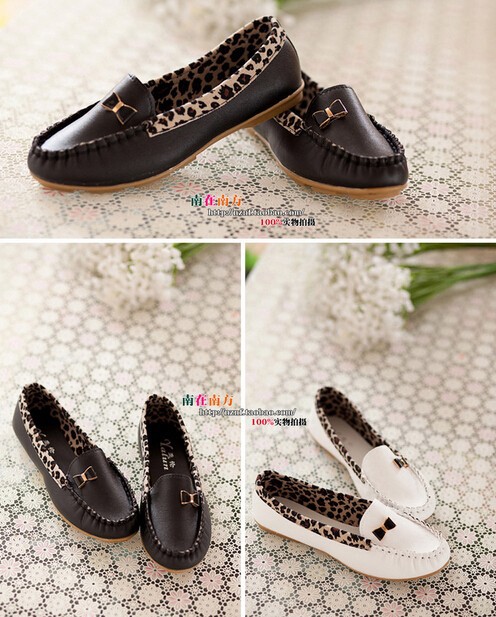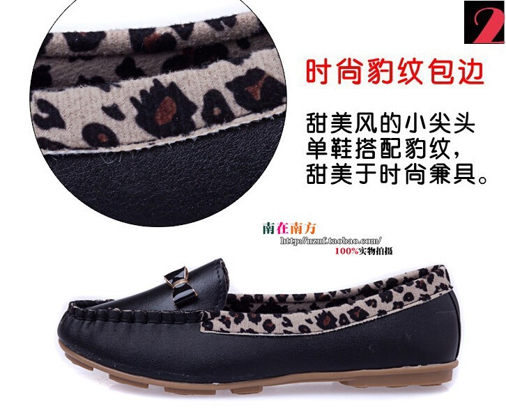 2014 Peas shoes wholesale shoes shoes casual shoes leopard splicing Korean female soft leather flat shoes Peas XZ002