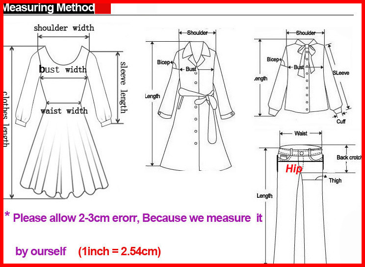 All dimensions are measured by hand, there may be 2-3cm deviations. Please ignore the tag size comes with the cloth. The tag size sometimes can be a larger than our description size because those are for Chinese. We are 1 or 2 sizes smaller than European and American people.
