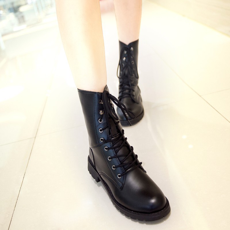 2014 Spring Korean version of the influx of British couple lace round flat flat with high-top boots shoes Martin boots Knight