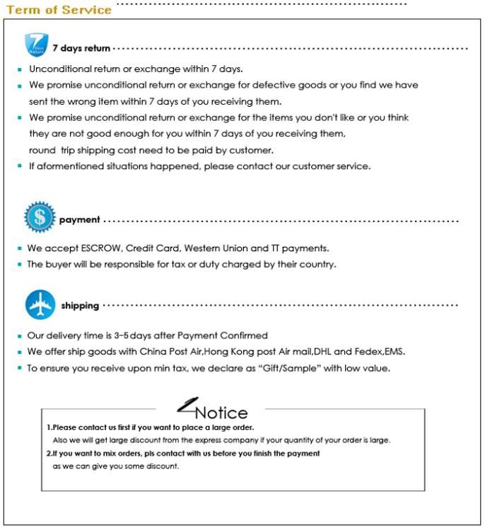| Seller Service | On-time DeliveryIf you do not receive your purchase within 60 days, you can ask for a full refund before order completion (when you click "Confirm Order Received" or exceed confirmation timeframe). |
