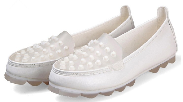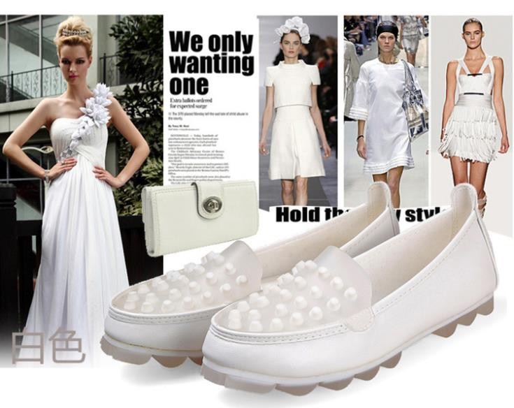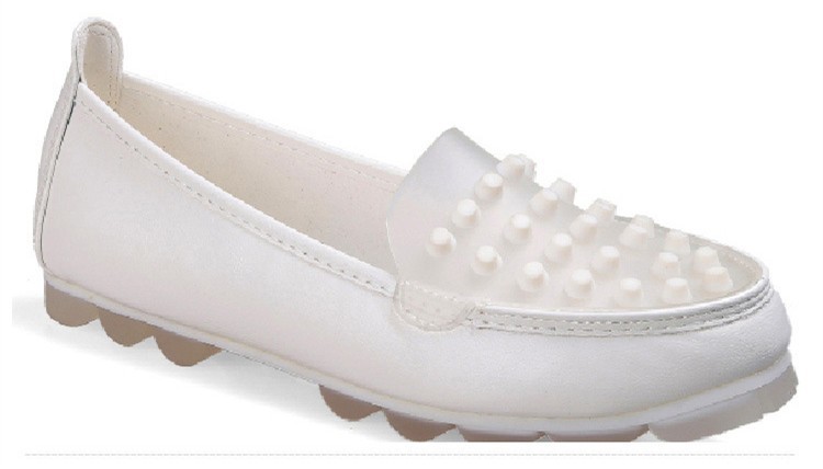 Hot 2014 New Fashion Ladies Cute Genuine Leather Ballet Casual Womens Shoes White Loafers Low Heel Comfort Flats 5