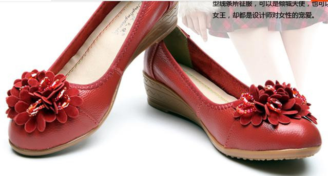 2014 spring new sweet flowers leather shoes patent slope with mom dancing Specials@