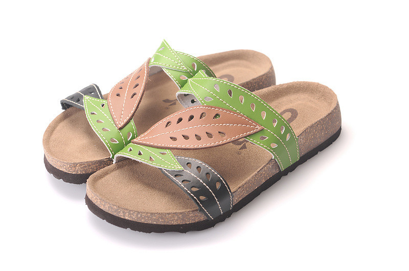 2014 spring & summer Unisex Arizona Soft Footbed Sandal Birkenstock genuine leather leaf patchwork Cork Sandal Women