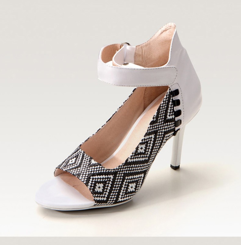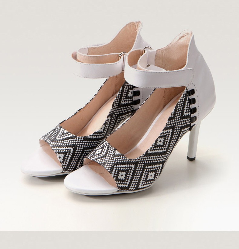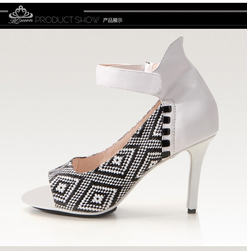 2014 summer new black and white diamond pattern preparation popularity sandals women sandals with thin heels