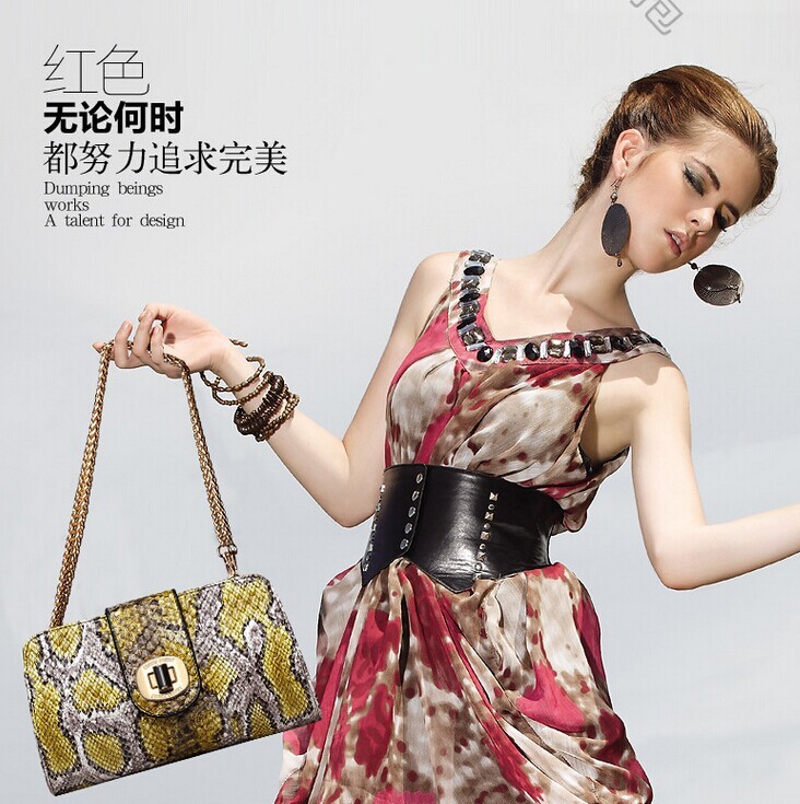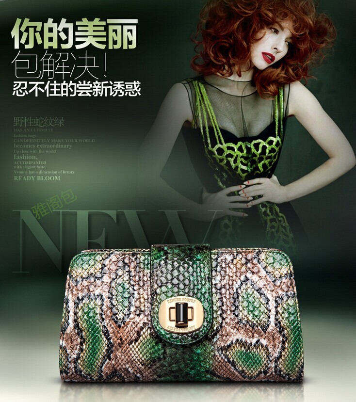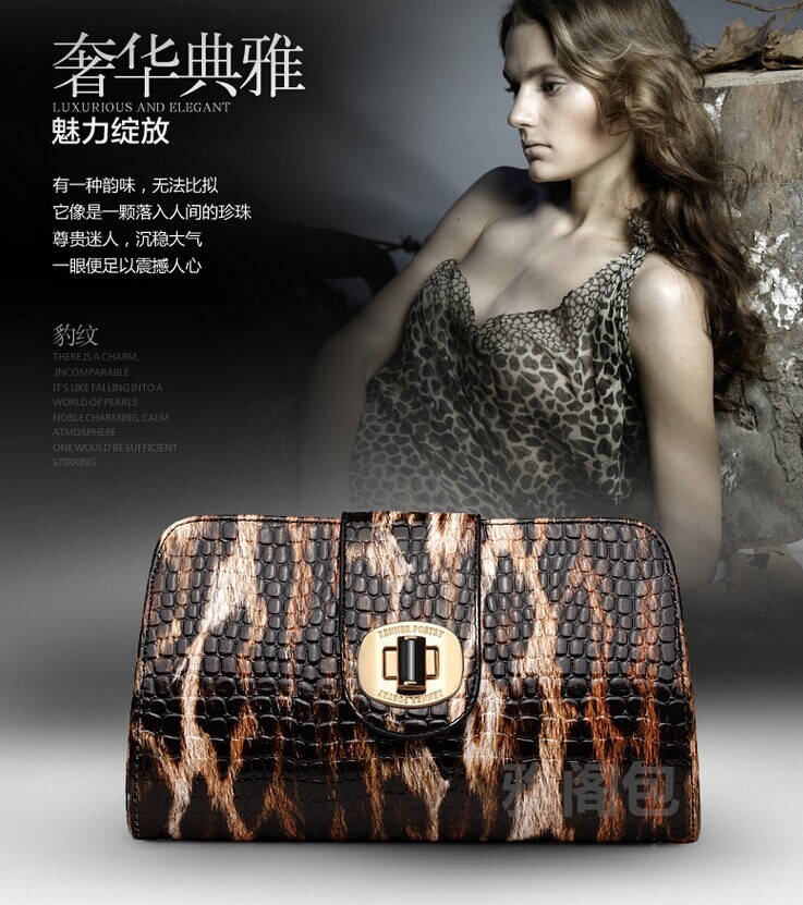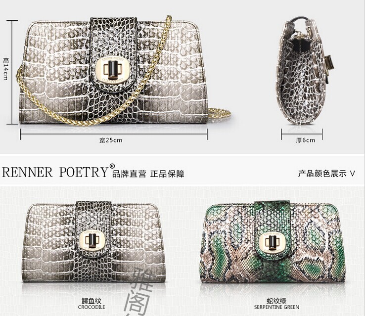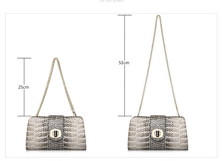 2014 summer new European and American fashion handbags luxury glossy crocodile clutch handbag chain Dinner