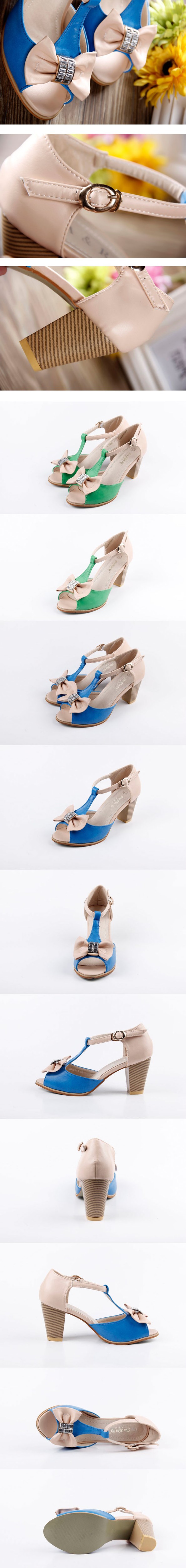 2014 summer new fashion women’s sandals fish head diamond bow shoes with thick heels mom