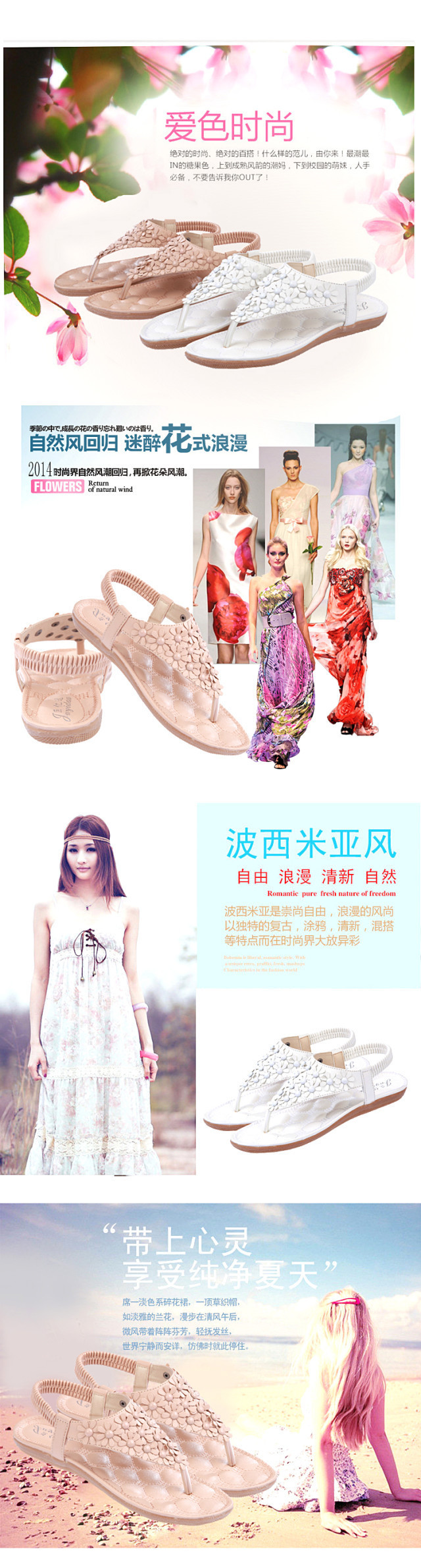 2014 summer new sandals bohemian beaded thong flip female flowers flat shoes, summer shoes
