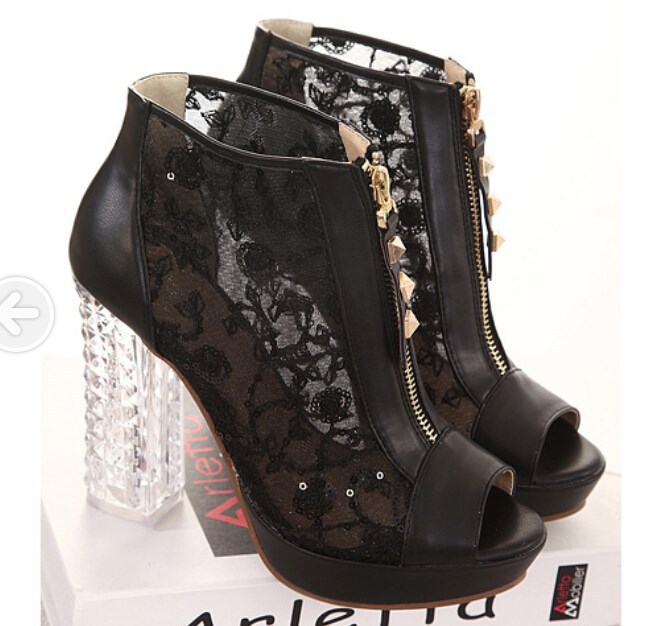2014 summer station Rome chaton lace waterproof high heeled sandals crystal shoe coarse fish mouth shoes female Merchandiser