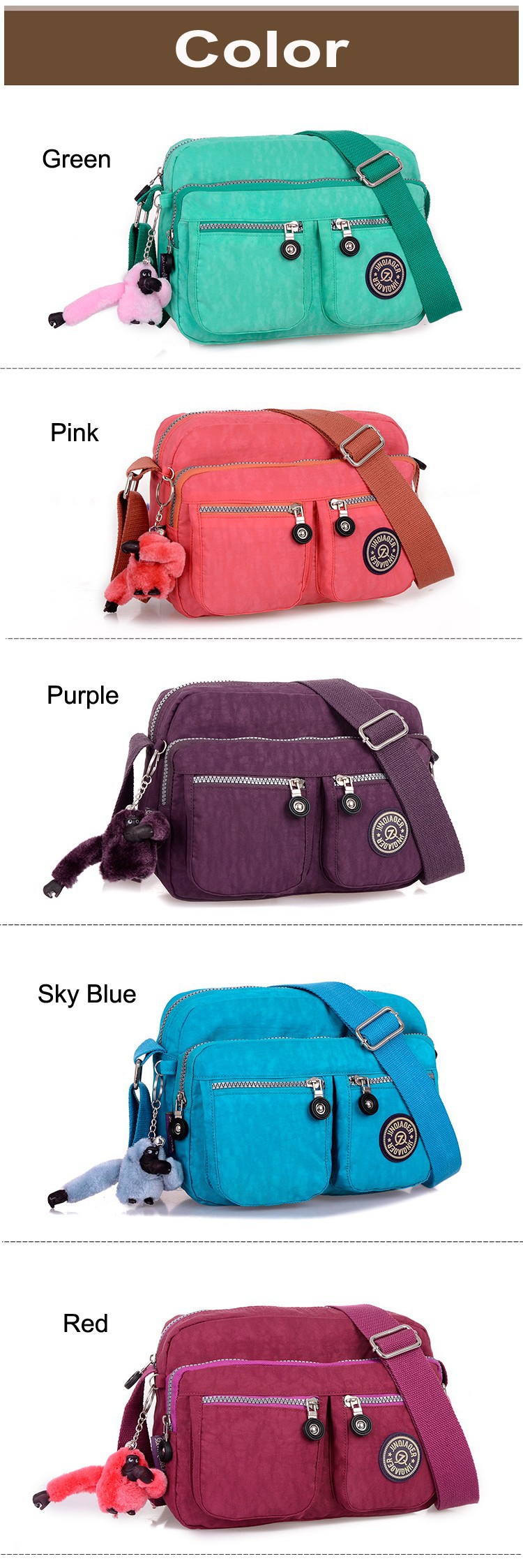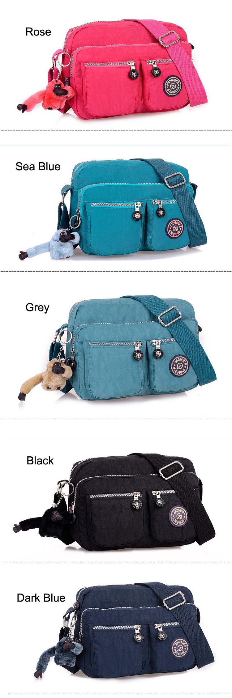 2014 summer women’s solid travel waterproof handbag shoulder messenger nylon bags for women ladies female bolsa fashion color