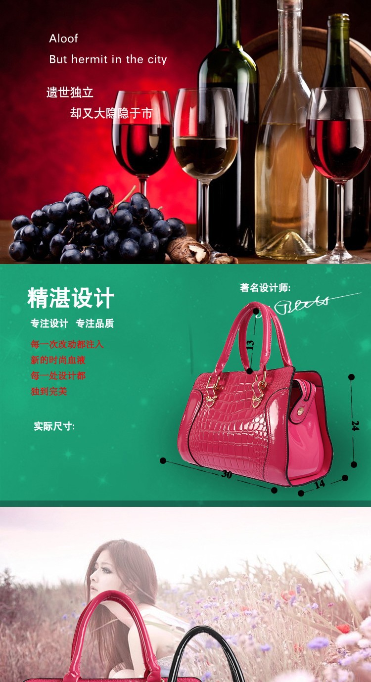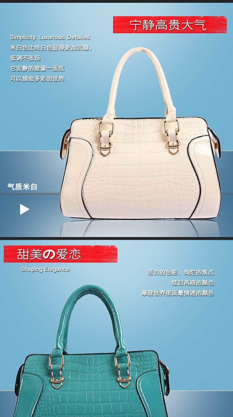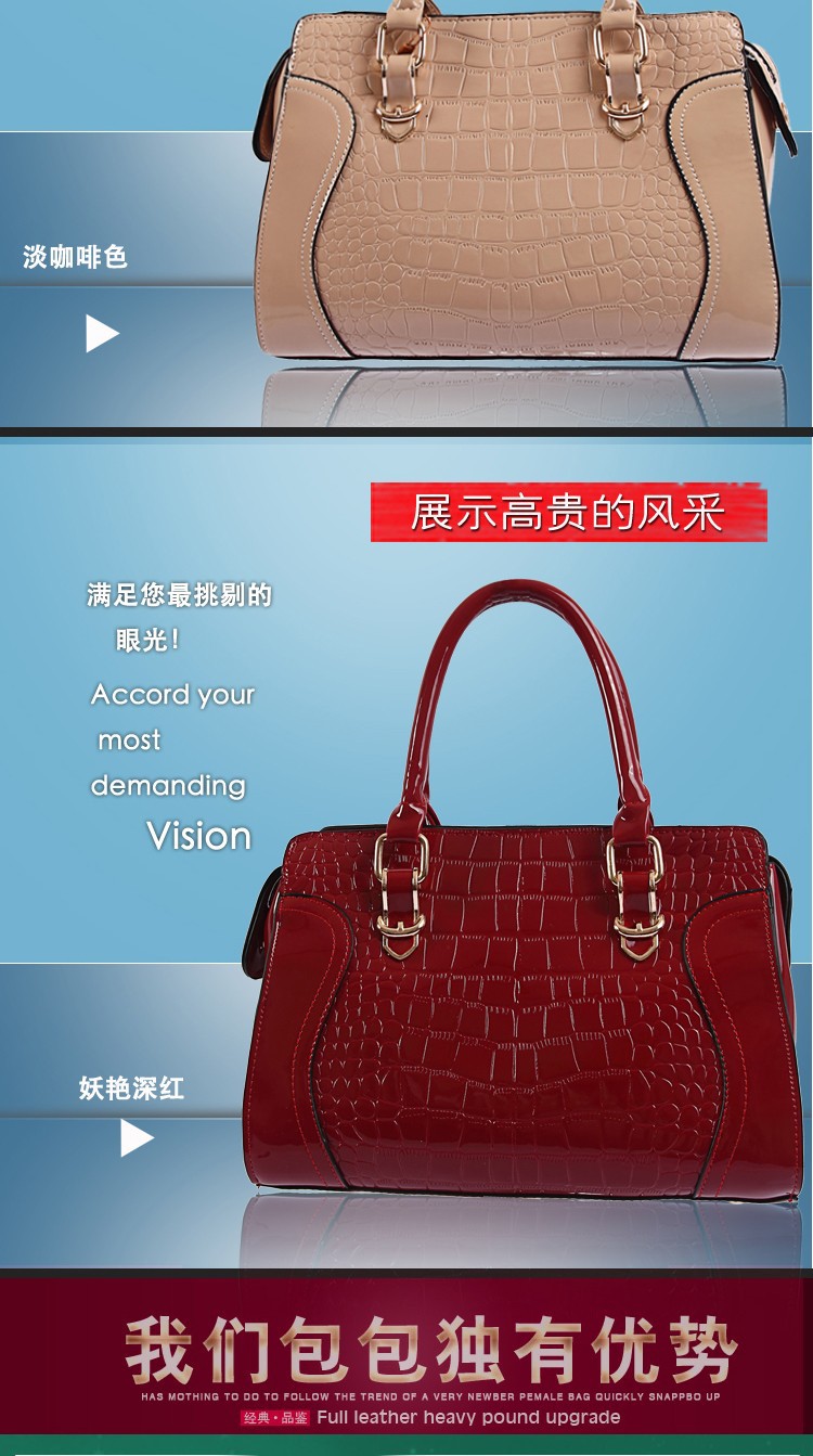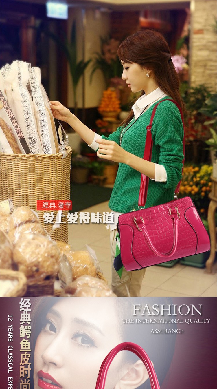Applicable objects: youth, gender: female style: handbag, quality of a material: crocodile skin, lift carry part type: hard, mode of closure: zipper, the internal structure: dark bag mobile phone bags, zipper bags outside bag types: patch pocket inside; Popular element: crocodile grain; Design: the pure color; Color classification: black crocodile grain The crocodile grain scarlet The crocodile grain to green The crocodile grain mei red The crocodile grain purple The crocodile grain pink The crocodile grain rice white Crocodile grain deep blue at a loss to earn credit Khaki crocodile grain; Are there any sandwich: so; Bags hardness: hard; Whether the folding: no; Price range: colour: new; Applicable scenario: leisure; In the bag bag size: (the longest edge 30-50 cm); Style: fashion trends; Shape: square cross paragraph; Shoulder strap styles: single; Material in the material: polyester.