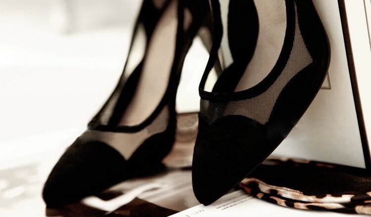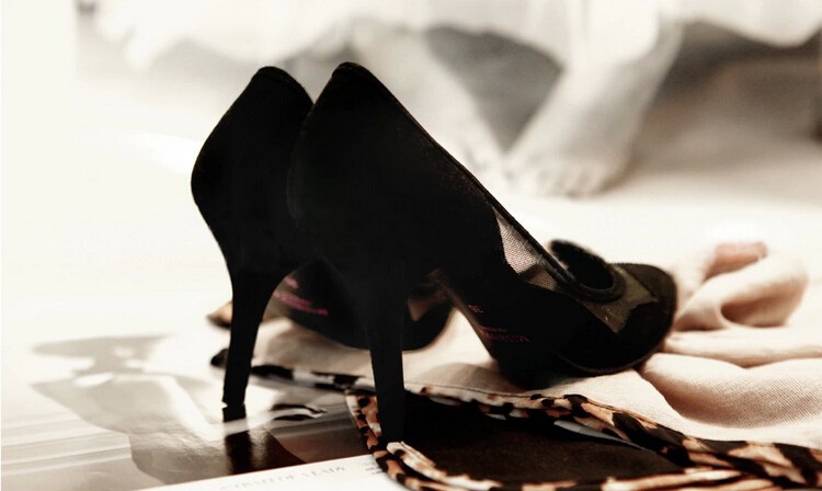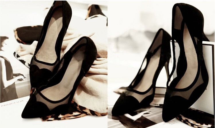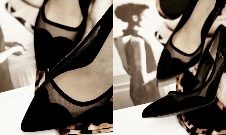 2014 US&UK Style Hot Fashion Mature Sexy Black Lace Hollow Women Thin Heel 8CM High Shoes