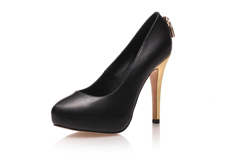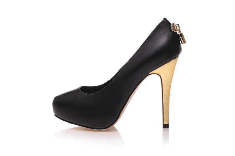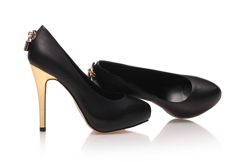 2014 Women’s New Style Black Genuine Leather With Gold Lock 12cm High Heel Pumps,Ladies Design Fashion 2.5cm Platform Nude Shoes