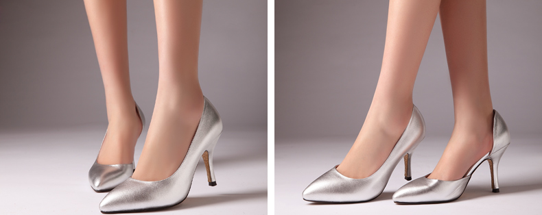 2014 women s pointed toe high heeled shoes genuine leather thin heels single shoes gold silver