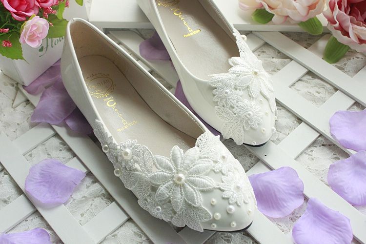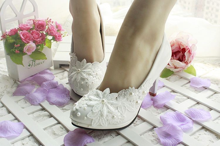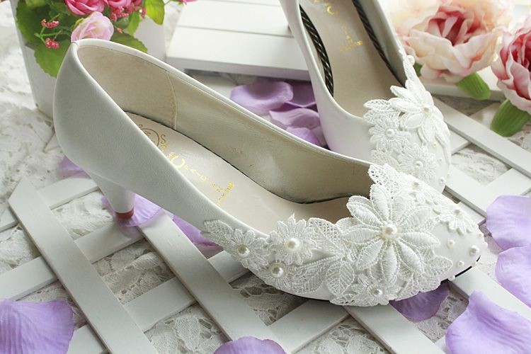 2014 women’s spring and summer shoes single shoes thick heel high-heeled shoes white lace wedding shoes bride bridesmaid shoes