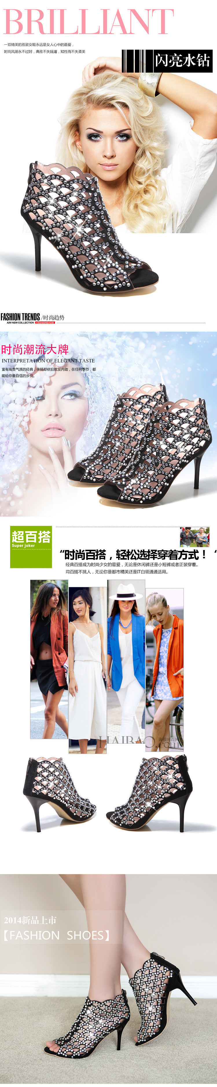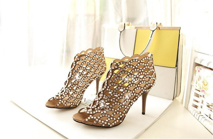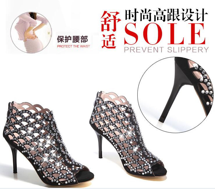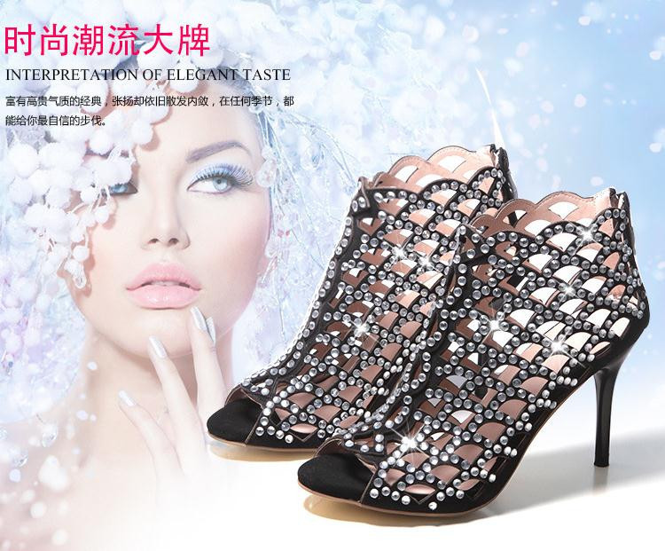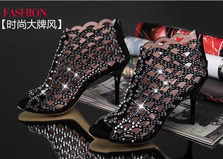 2014Europe and United States the new star Costly diamond scales hollow-out decorative pattern a stiletto sandals with fish mouth