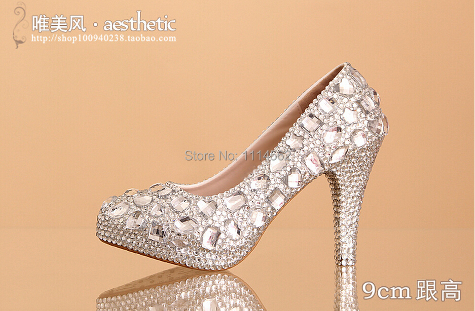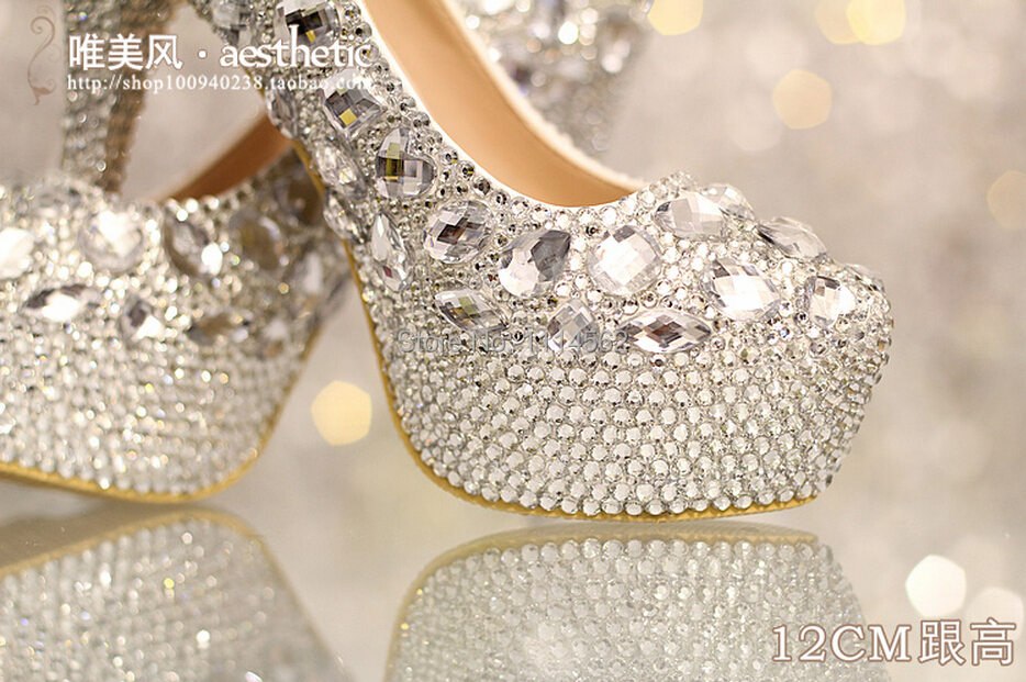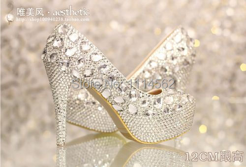 2015 Bridal Dress Shoes Elegant Women Crystal High Heel Wedding Shoes For Bride Sexy Party Dress Shoes For Wedding Ceremony