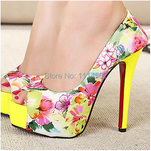 2015 New High Quality Wedding Shoes Prom Evening Party Dress Women Lady Bridal Yellow Blue 14cm Heeled Shoes